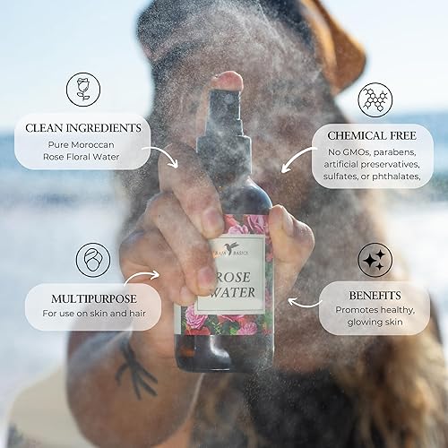 Single-ingredient skincare – Made with Moroccan rose floral water, this gentle mist delivers the natural aroma of fresh roses while hydrating and toning the skin. For an extra cooling boost, store organic rose water in the fridge!