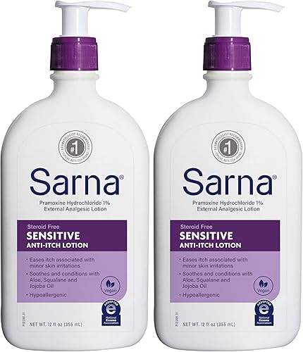 Sarna Sensitive Anti-Itch Lotion, Steroid-Free, Fragrance-Free, Vegan, Hypoallergenic, National Eczema Association Accepted, 1% Pramoxine Hydrochloride, 12 oz(12 Fl Oz (Pack of 2))
