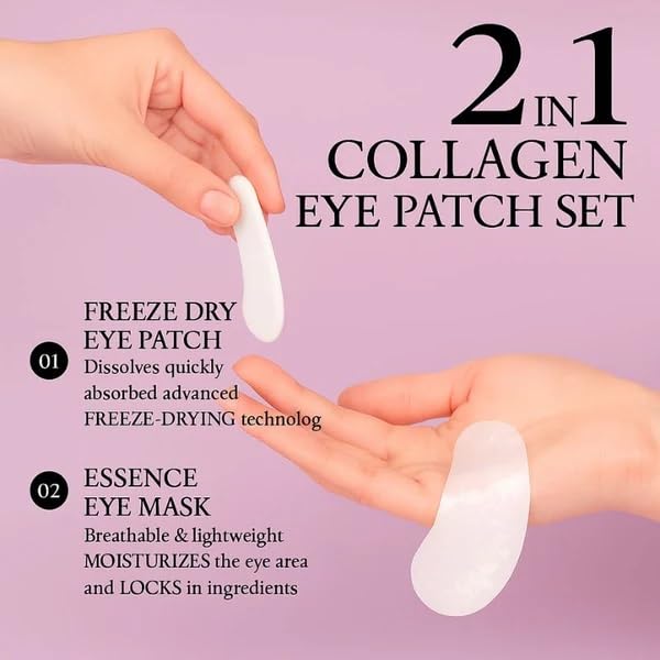 Powerful Anti-Aging Treatment with Collagen & Hyaluronic Acid: These innovative eye patches are infused with freeze-dried collagen, hyaluronic acid, and other nourishing ingredients that deeply hydrate, firm, and smooth the delicate under-eye area to reduce the appearance of fine lines and wrinkles