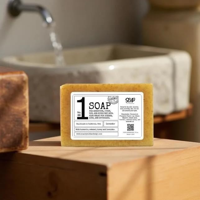 No1 Dry spot soap with Turmeric, oatmeal and honey. For skin is super dry, itchy, red, and outbreaks. Great to combine with the skin oils here on the site. (Especially No1 Dry Spot oil and the Facial oil . Shea butter, Propylene Glycol, Sodium Hydroxide (lye), water, glycerin. Organic Turmeric, organic oatmeal, organic honey, and organic (extra pure) Lavender essential oil.