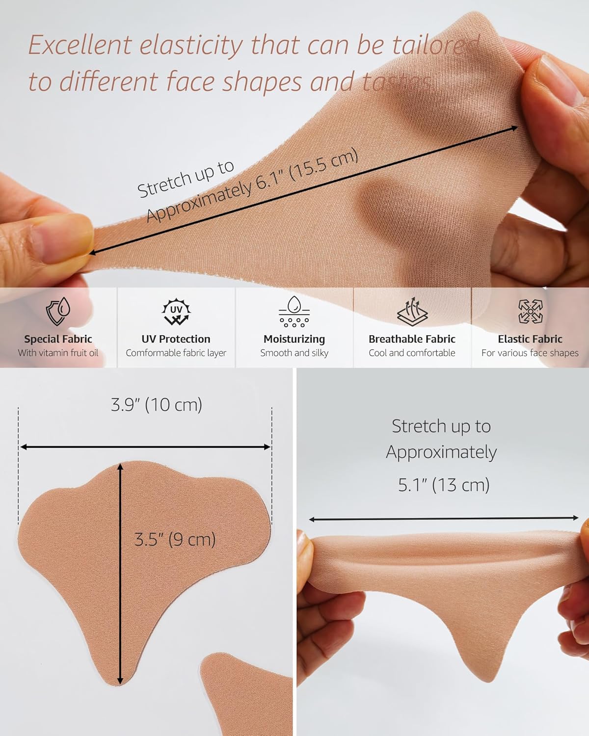 Can cover area that can’t be covered by mask, such as below the eyes or around the cheeks. Slim and tight, stretchable nylon material makes it possible to increase adhesion and facilitate activity. You can attach it anywhere on your face.