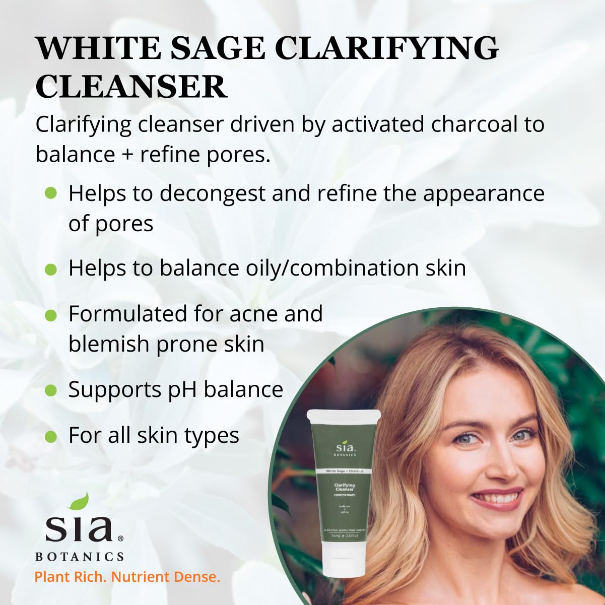 Sia Botanics Clarifying Facial Cleanser (74ml/2.5oz Eco Tube) | Face Wash w/White Sage, Activated Charcoal, Tea Tree | Natural, Clean, Botanical Skincare for Women(Cleanser)