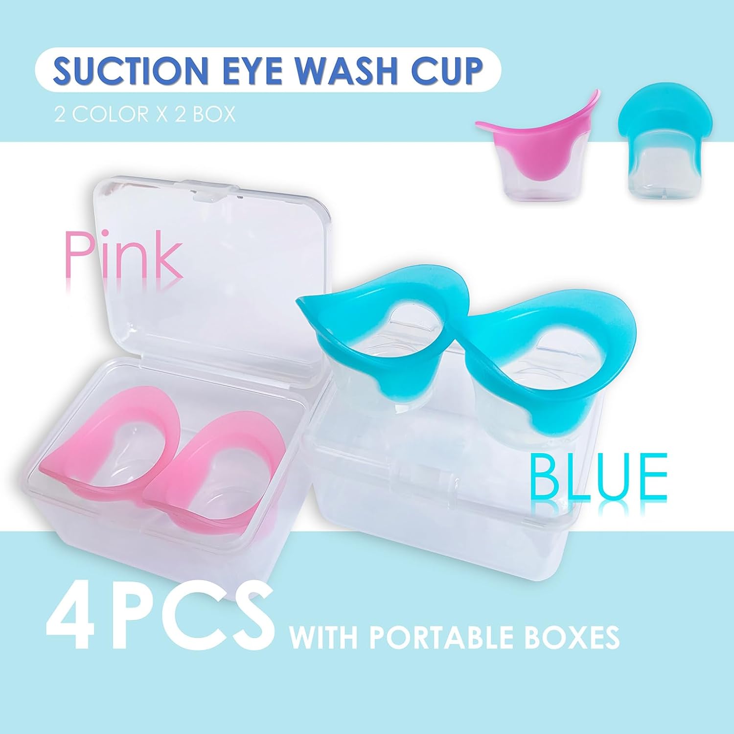 Silicone Eye Wash Cups, Eye Wash Bath for Refresh and Clean Tired Eyes, 4 Pcs Updated Version Pink and Blue with 2 Storage Containers