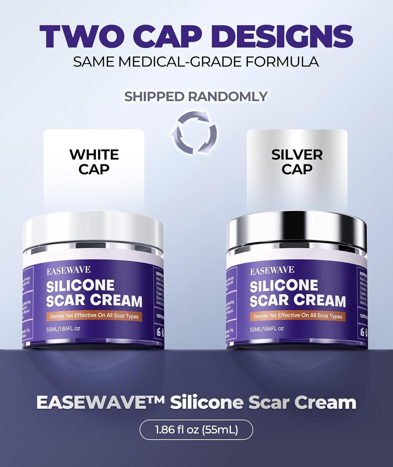 WATCH NEW SCARS FADE IN JUST 2 WEEKS! Tired of waiting months for scar results? So were we. That’s why we created EASEWAVE Ultimate Scar Cream, an upgraded formula powered by 6.7% active complex (3% medical-grade silicone + 3.7% advanced compounds). It targets scars from surgeries, C-sections, burns, acne, and pregnancy stretch marks. While other scar creams keep you waiting, EASEWAVE scar removal cream delivers visible improvements in as little as 2 weeks—especially on new scars. Stop wasting time-restore your skin faster, rebuild confidence, and wear what you love again, and on your terms.