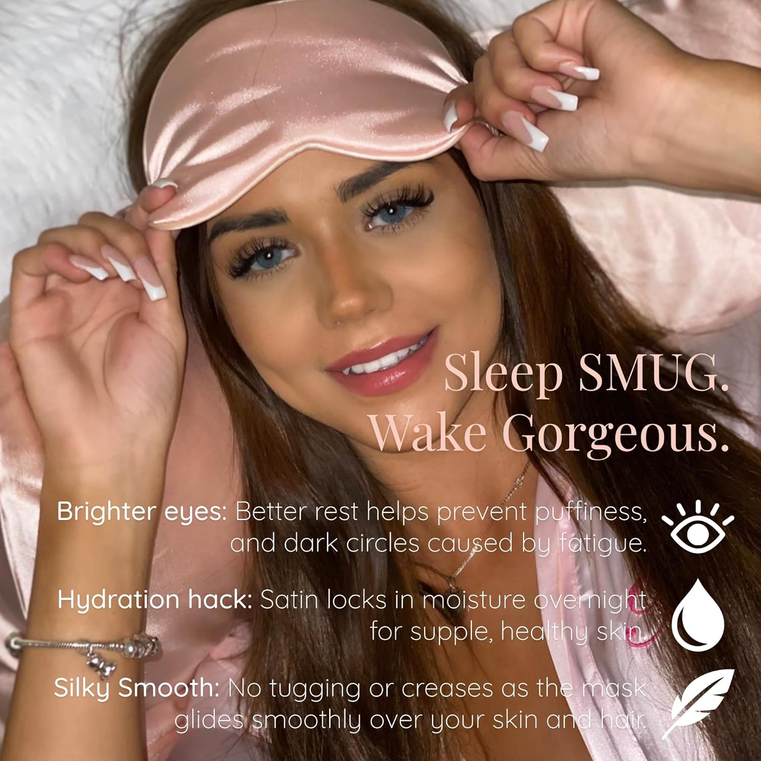 SMUG Satin Sleep Mask - Travel, Night Shift, Sleeping Eye Mask for Women & Men - Soft to Nourish Skin, & Reduce Dark Circles - Deep Dream Sleep Aid Eye Cover to Block Out Light - Peachy(Pink)