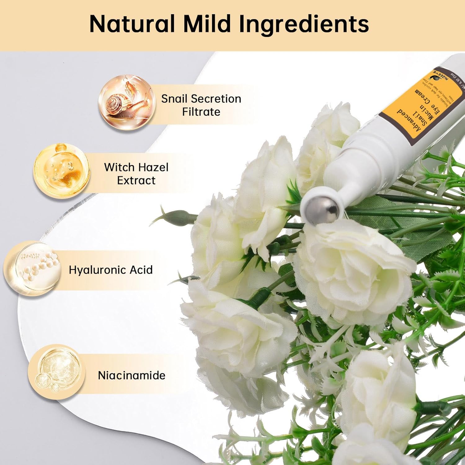 ROLLER EYE CREAM: Snail mucin eye cream adopts a metal fingertip application design, which can fit the eye circles, massage the eyes and help the eyes absorb quickly. Moisturizing the eyes while relieving fatigue around the eyes