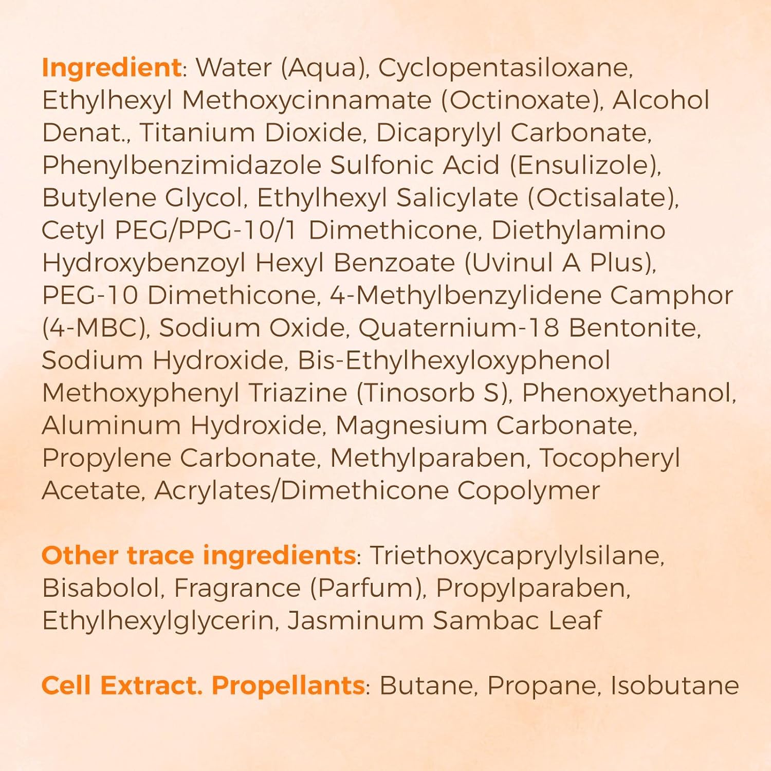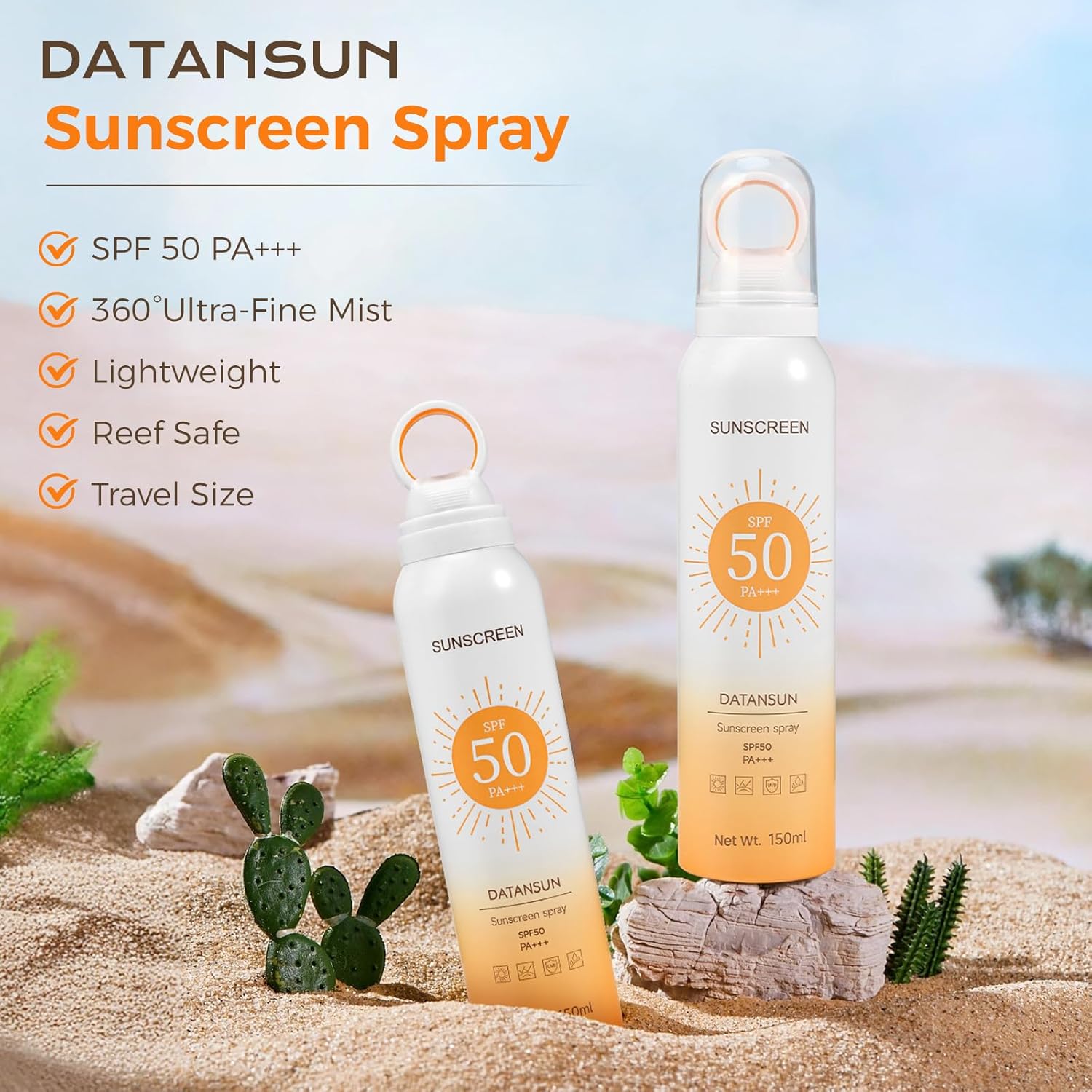 【SPF 50 PA+++】Suitable for strong sunlight indoors and outdoors. Broad spectrum sunscreen spray can block up to 98% UVA/UVB rays, protecting your skin from sunburn and premature aging.