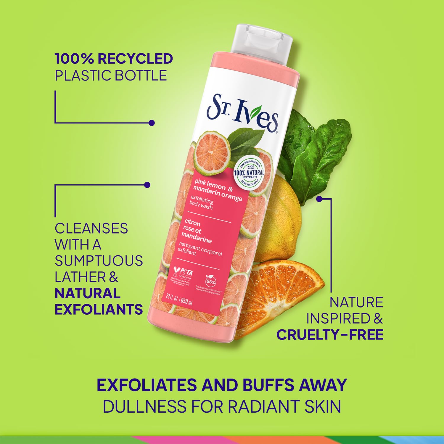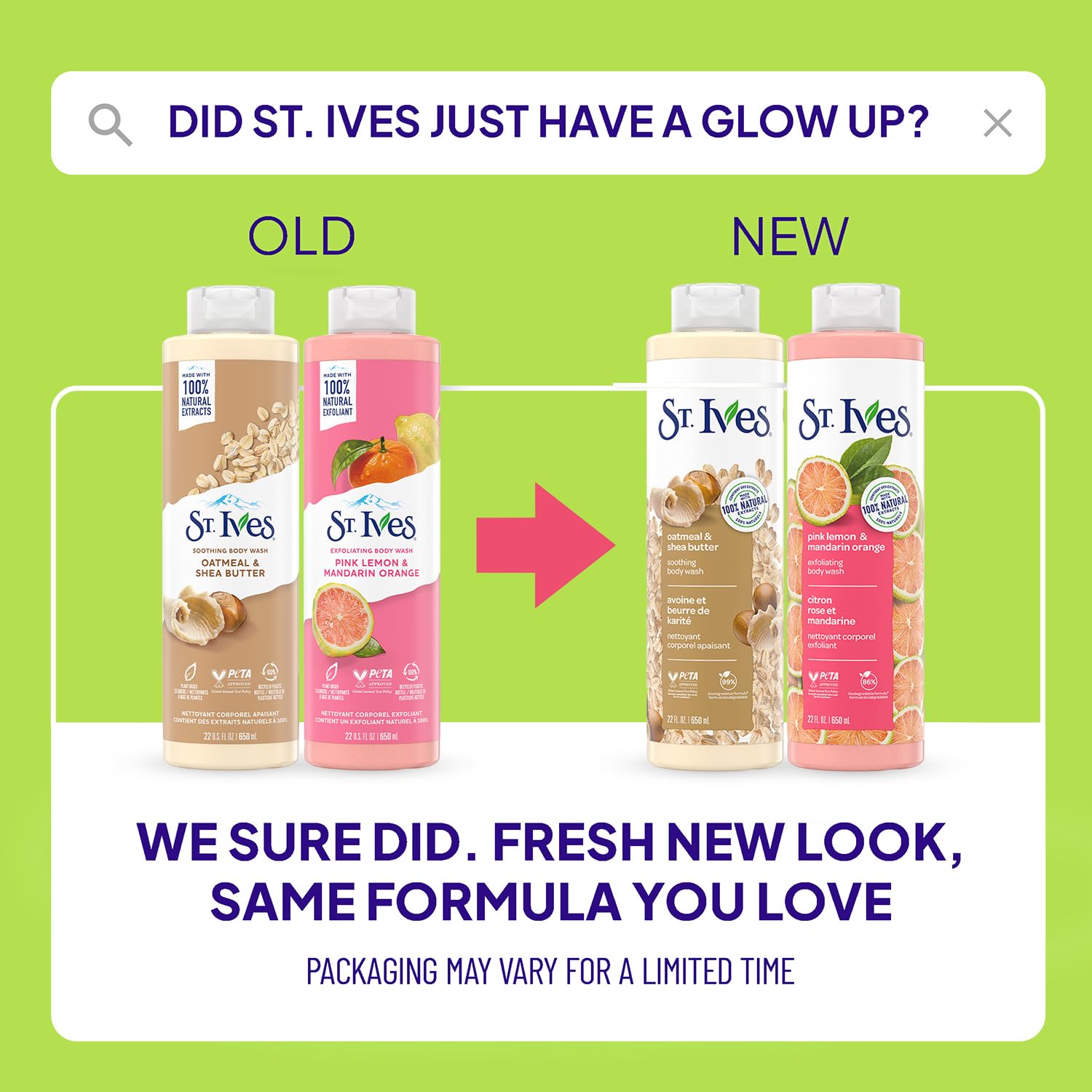 St. Ives Body Wash Variety 2-Pack, Soothing Oatmeal & Shea Butter + Exfoliating Pink Lemon & Mandarin Orange, 100% Natural Extracts, Cruelty-Free, 22 Oz Ea