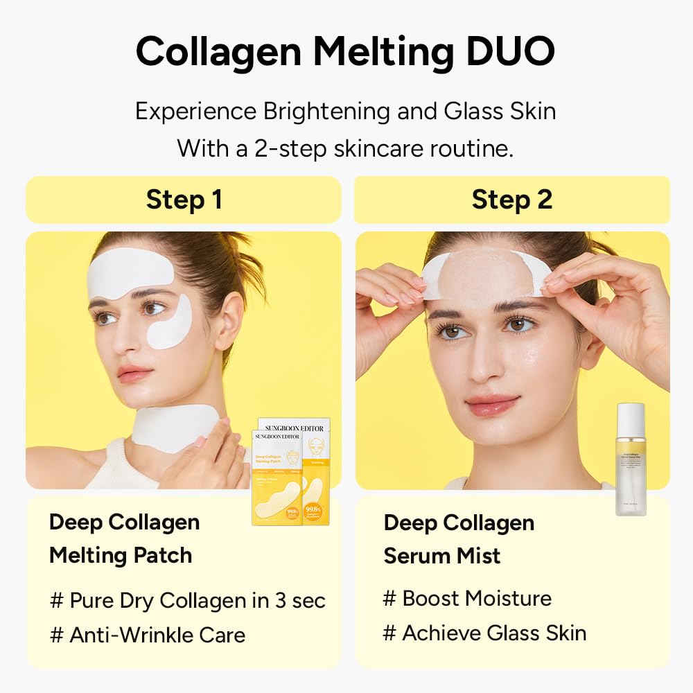 SUNGBOON EDITOR Melting Collagen Set (Deep Collagen Melting Patch 6pcs, Barrier Serum Mist), Real Collagen Care for Puffy Eyes and Neck Wrinkles, Best Gifts for Mom, Skincare Gift Sets for Mom