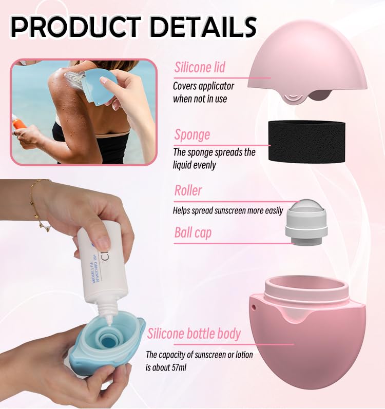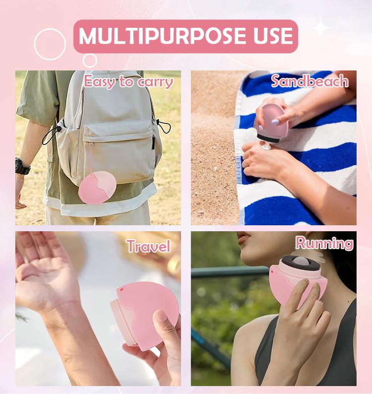 Sunscreen Applicator for Kids Adults & Families, Portable BPA Free & Refillable Sponge Lotion Roll on Sunscreen, Experience Fast and Easy Application Outdoor Accessories for Beach Travel and Vacation(Pink)