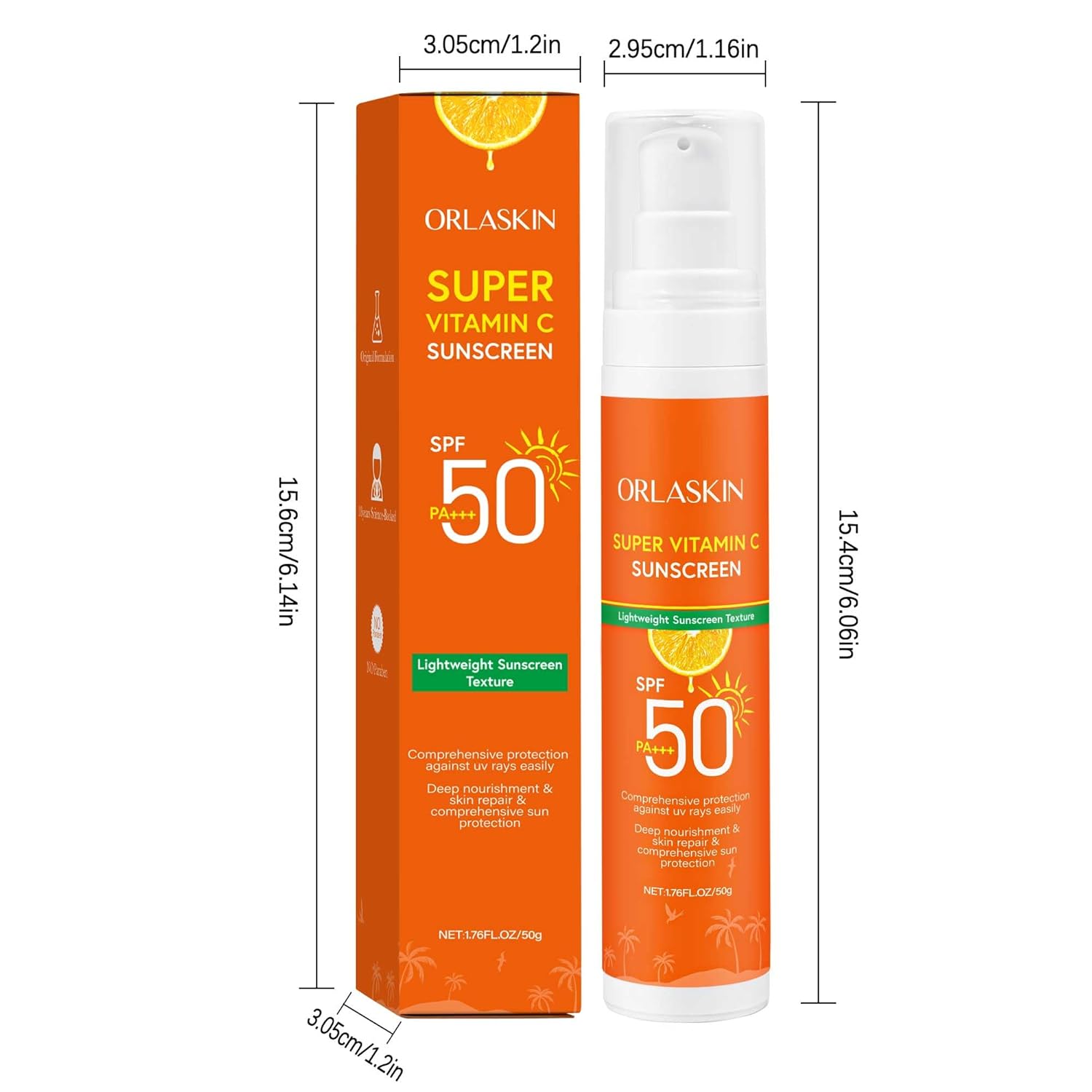 NON-WHITE TEXTURE - ORLASKIN SPF 50 Vitamin C Sunscreen has a refreshing, light scent, absorbs easily, doesn't feel sticky or white, and is water-resistant.