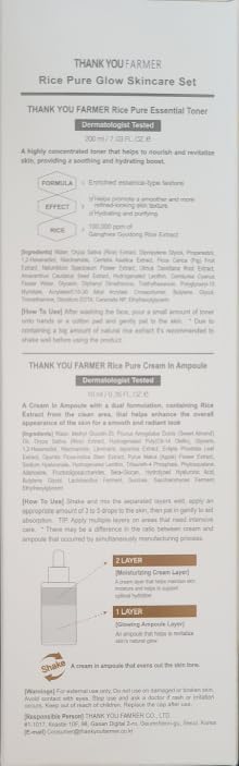 Comment on "THANKYOU FARMER Rice Pure Skincare Set, Full Size Toner(7.03 fl oz) + Mini Size Ampoule(0.35 fl oz) Korean Skincare Set, Glass Skin(Skincare Set)"