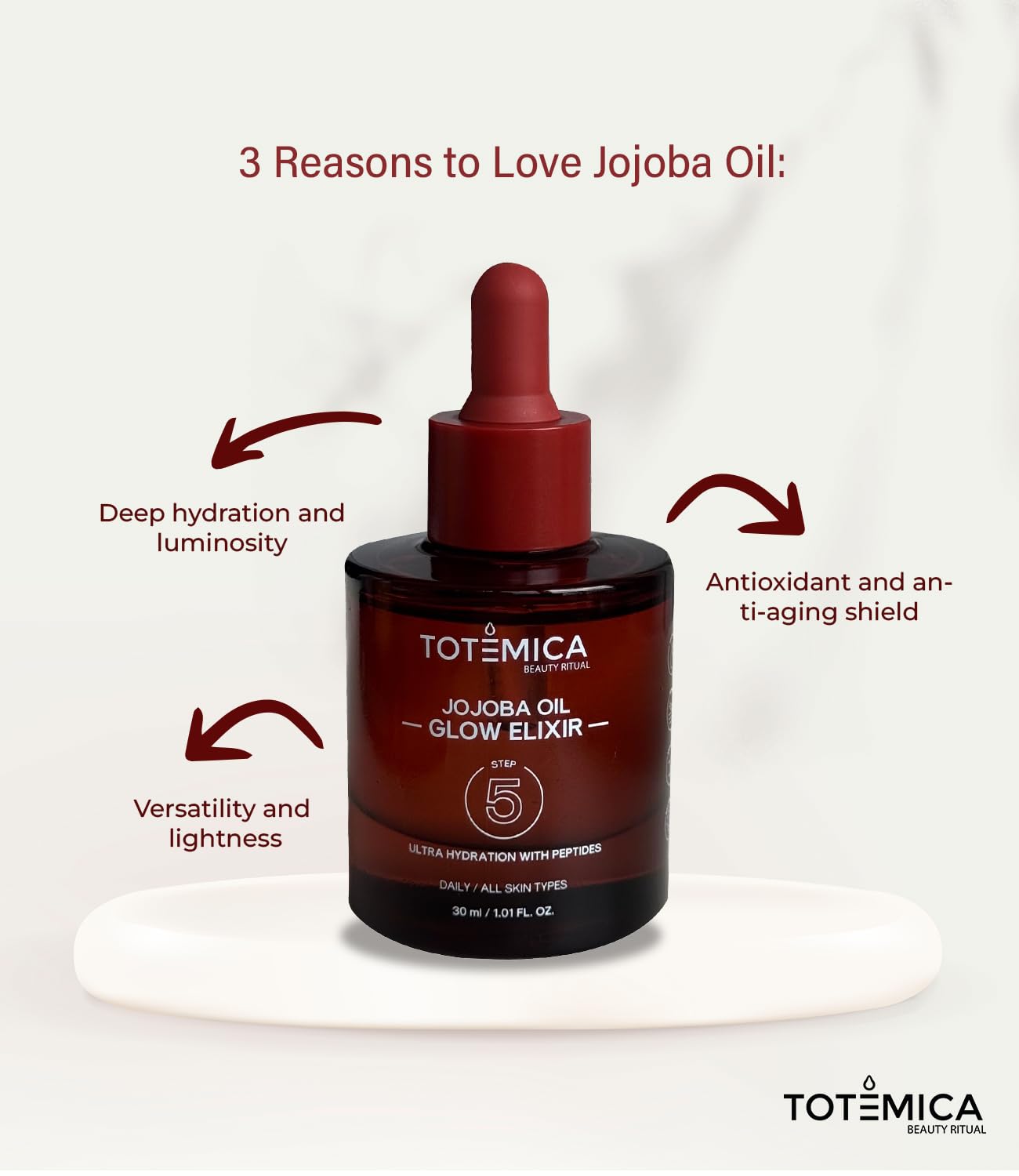 TOTEMICA Organic Jojoba Oil Glow Elixir – Hydrating & Anti-Aging face oil with Peptides | Vegan & Non-Comedogenic facial oil & moisturizing body oil for skin oil & hair oil (1.01 Fl Oz)