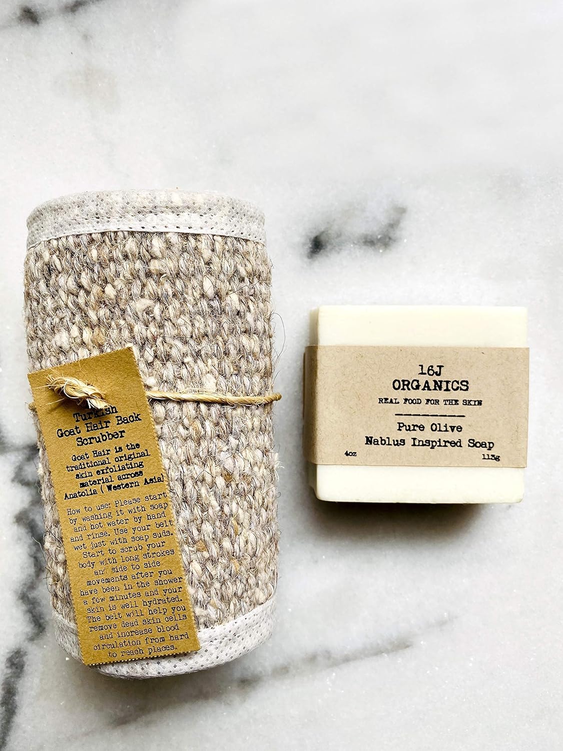 Turkish Goat Hair Back Scrubber & Ottoman Empire Artisanal Pure Olive Soap