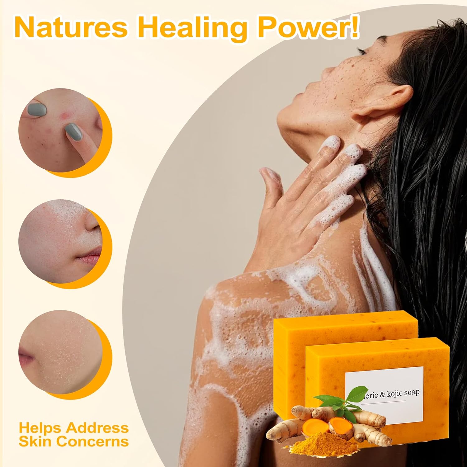Comment on "Turmeric Soap for Spots Remover, Lemon Turmeric Kojic Soap Bar with Vitamin C, Lemon, Retinol Collagen, More Moisturizing with Shea Butter for Face & Body (3)(2)"