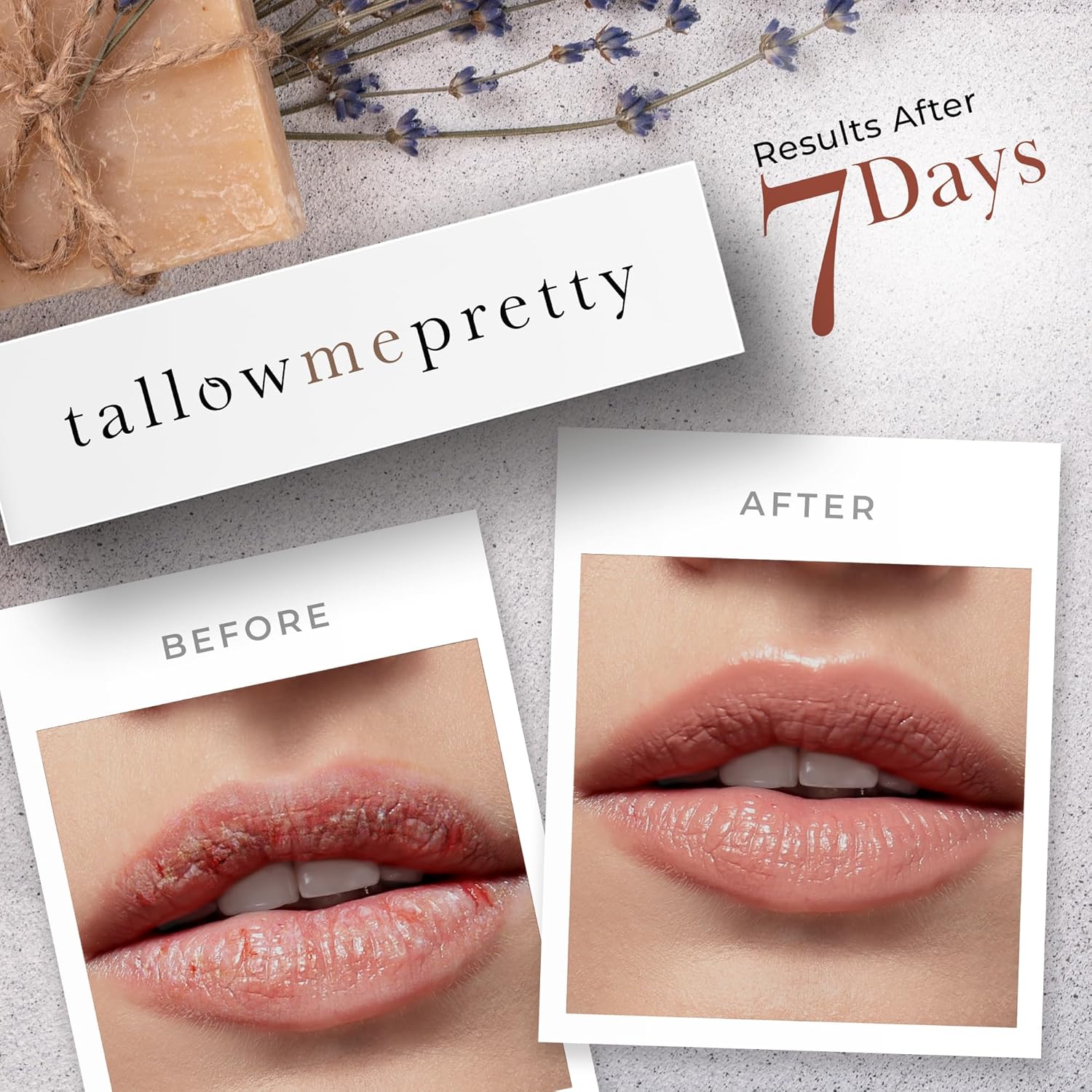 Round-the-Clock Care for Your Lips: Experience superior lip care with Tallow Me Pretty’s lip balms; They glide on smoothly, soothing chapped lips while forming a protective barrier that helps prevent common issues like peeling, cracking and inflammation