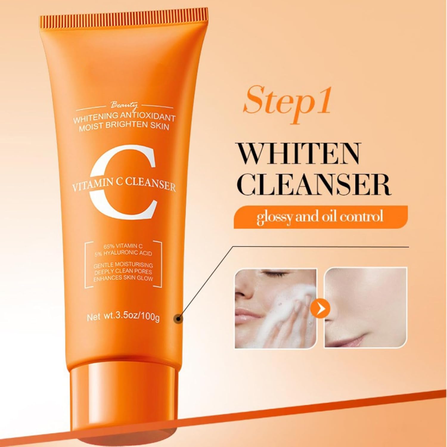 Vitamin C Skincare Set: This Vitamin C Skincare Set of 6 Pieces contains cleanser, toner, eye cream, serum, lotion, cream, this skincare set reduces excess oil and cleanses pores, replenishes moisture for dry skin, moisturizes and moisturizes the skin, and gives your face a healthier glow.