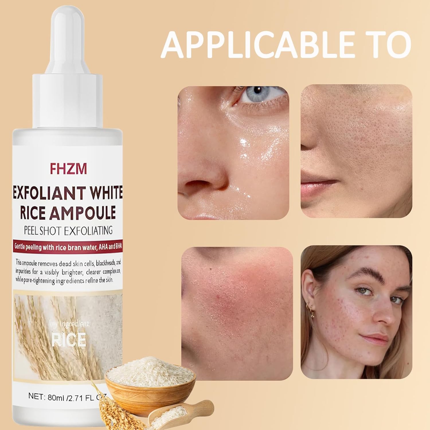 White Rice Exfoliant Ampoule,Deep Pore Cleansing and Gentle Scrub,Face and Body Exfoliant for All Skin Types (White)(1 Count (Pack of 1))