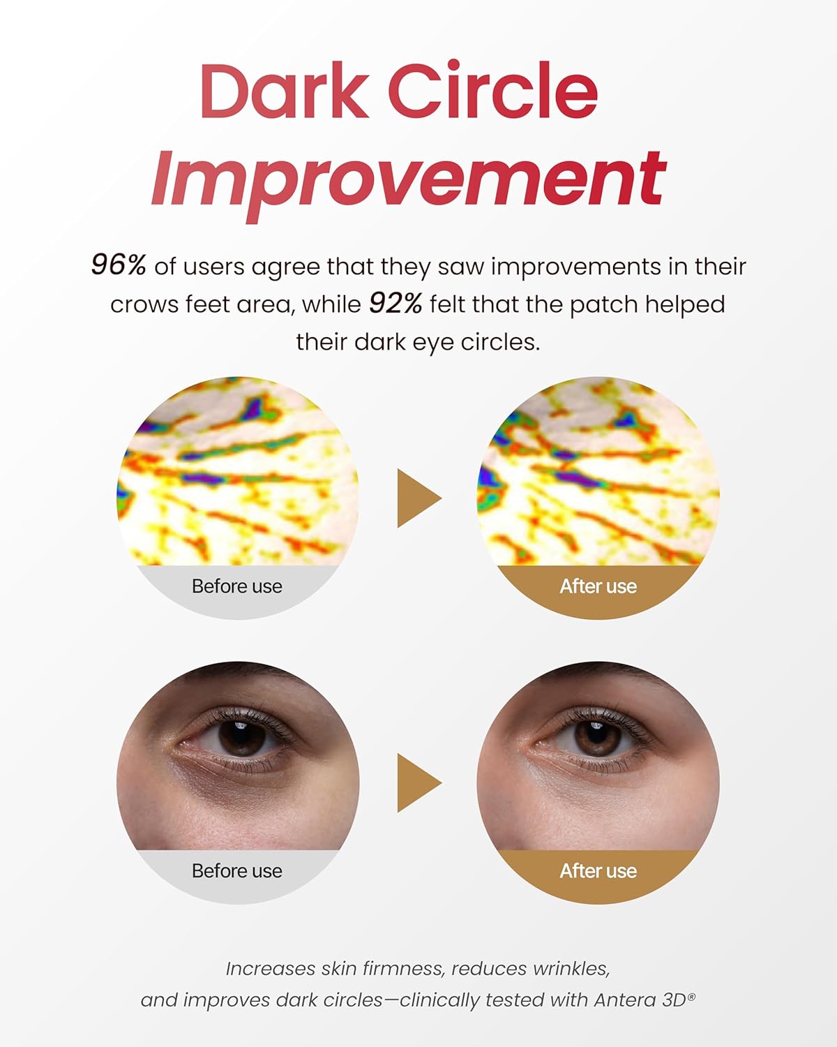 Advanced Hydrogel Technology: Designed to adhere perfectly to the under-eye area, these patches allow for maximum absorption of active ingredients, delivering long-lasting hydration and a refreshing cooling effect. For best results, apply hydrogel eye patch after your skincare has fully absorbed, especially around the eye area. Our essence-rich formula is ultra-nourishing -- removing excess moisture and oil on the face helps stay perfectly in place.