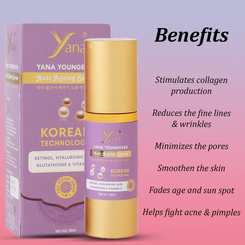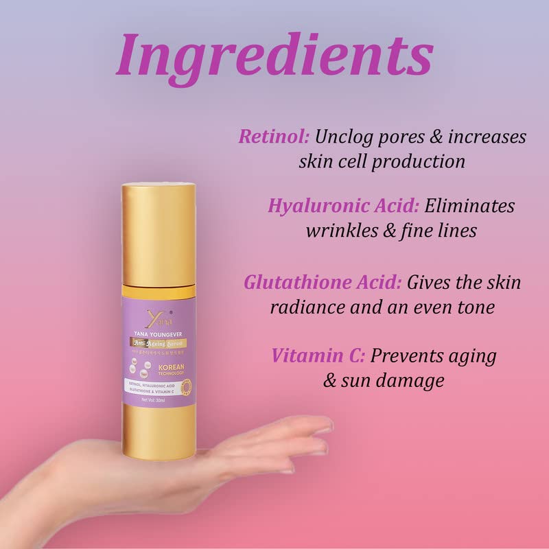 Yana Retinol Serum For Face With Hyaluronic Acid Serum & Vitamin C Hydrating Face Serum Night Facial Serum Skin Care Products For Men & Women Face Care Youngever Ageless