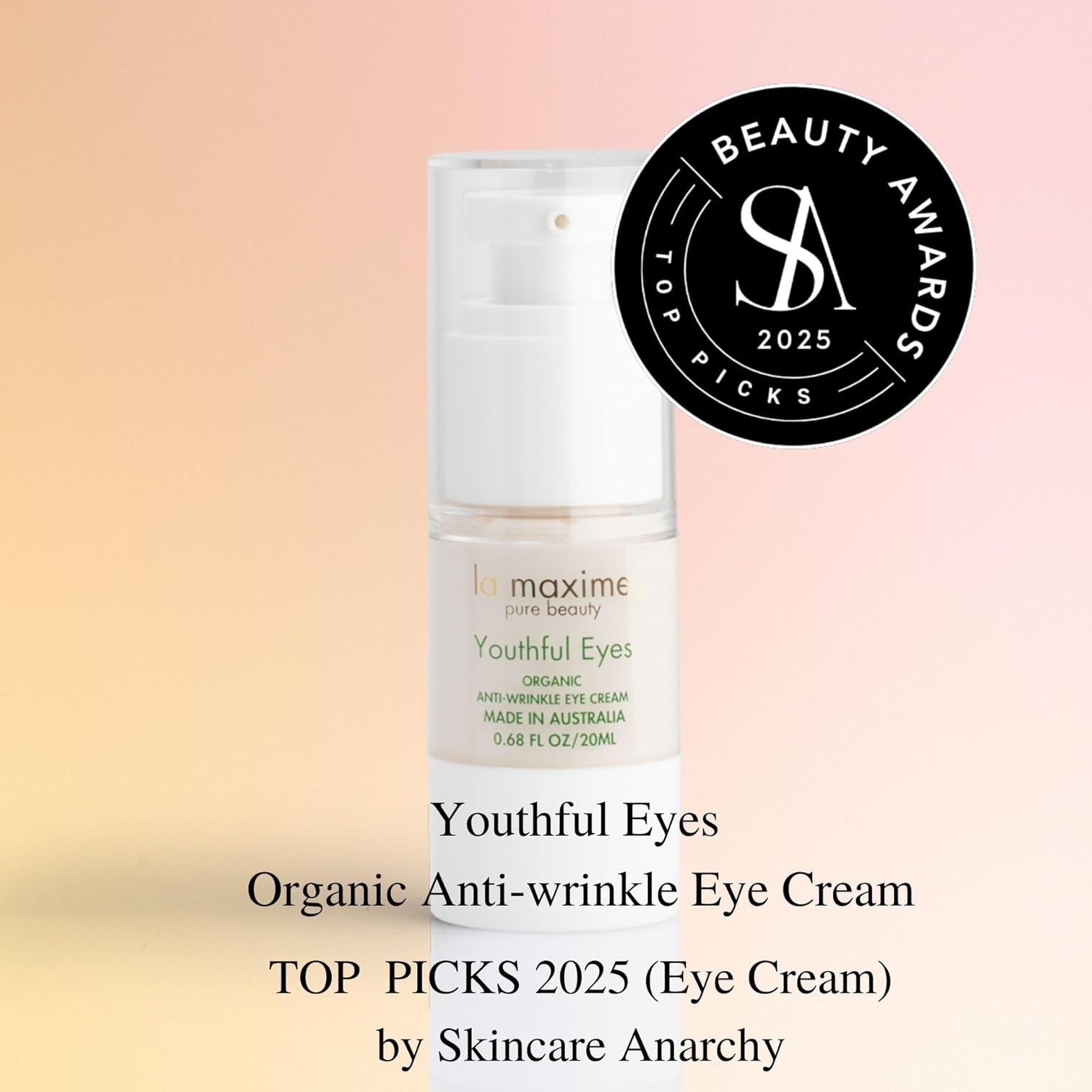 Youthful Eyes Organic Anti-Wrinkle Eye Cream, Targets Puffiness, Dark Circles, Eye bags and Fine Lines, Hydrating with Cucumber & Bilberry + 20 plant actives - Multi Award-winning formula