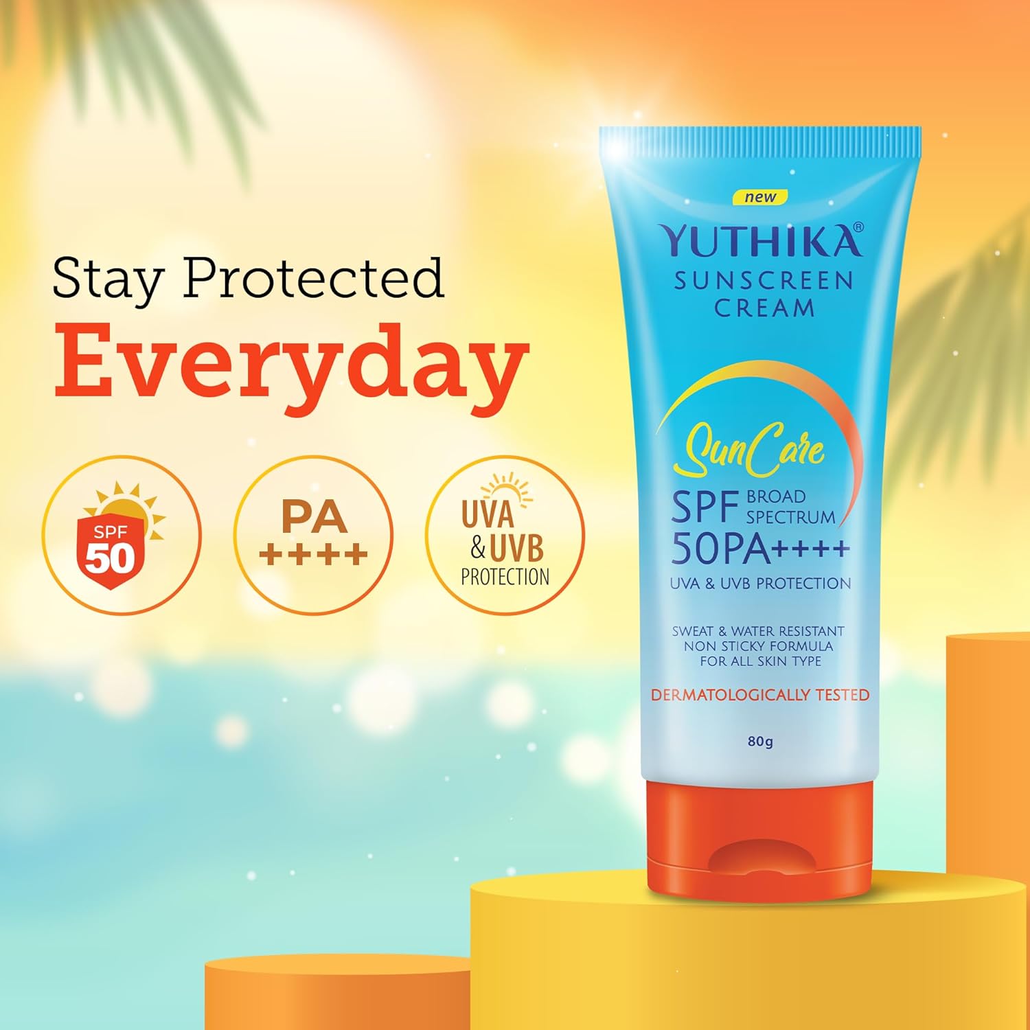 Yuthika Sunscreen SPF 50 PA++++ with UVA & UVB Protection 80g, Dermatologically Tested Sunscreen Cream for Women and Men