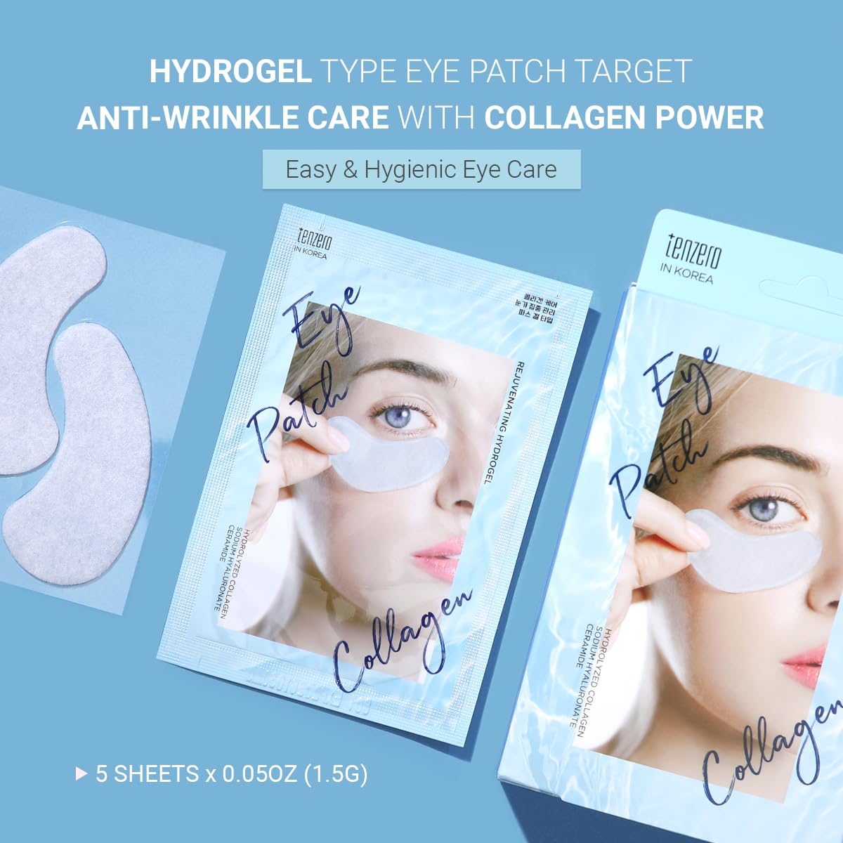 tenzero Rejuvenating Hydrogel Eye Patch Collagen 10 Patches (5 Pairs), Under Eye Patch, Firming Eye Mask for Wrinkles, Dark Circles, Puffiness, Hydrating, Anti Aging, Revitalizing with Collagen