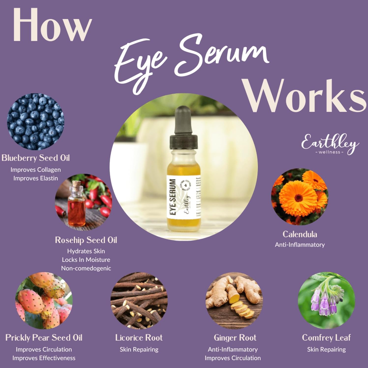 Earthley Wellness Eye Serum, Smoothes Wrinkles, Nourishes Skin, Banishes Dark Eye Circles, Youthful Eyes, Reduce Fine Lines, Parabens and Fragrance Free (15 ml)