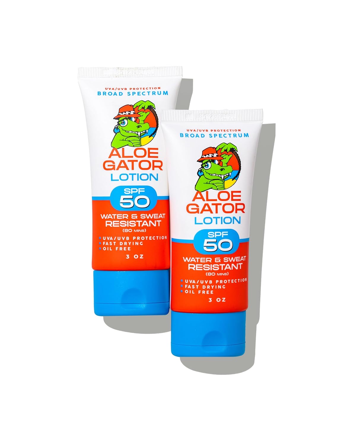 Aloe Gator Sunscreen Lotion SPF 50, (2 pack), Alcohol-Free, Paraben-Free,