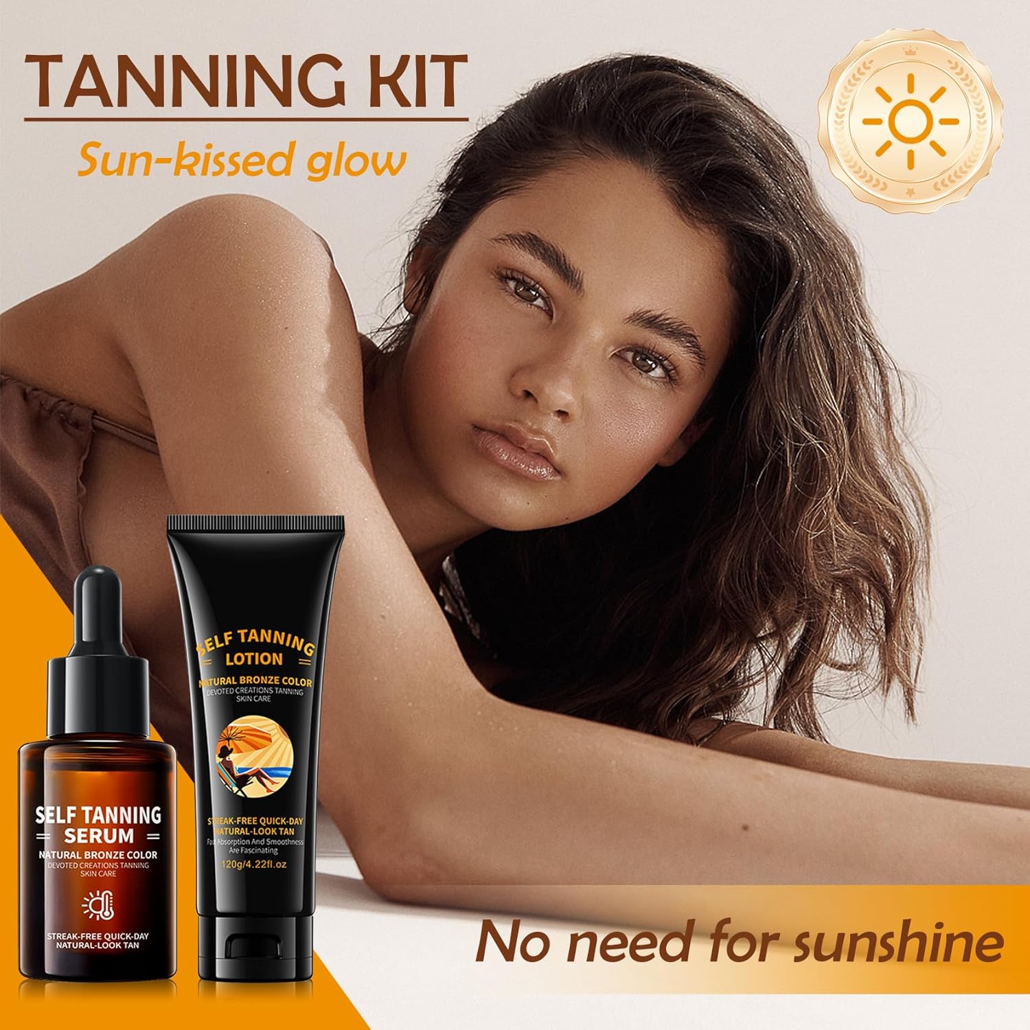 3PCS Self Tanner Set with Tanning Bed Lotion Accelerator,Bronzing Tanning Lotion and Hydrating Sun Tan Drops,Moisturizing Indoor Suntan Cream with Bronzer,Self Tanner Cream for Women Men