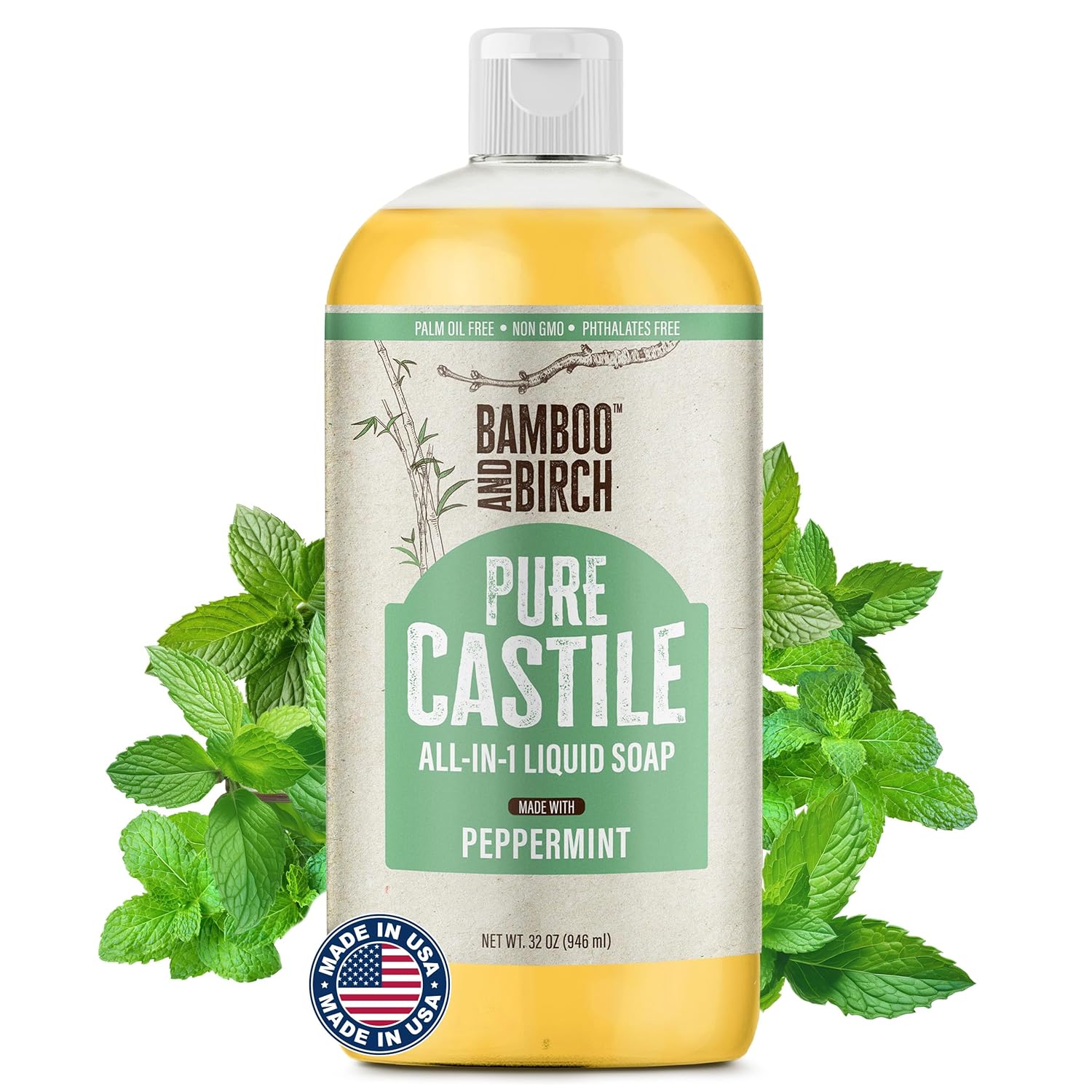 BAMBOO AND BIRCH Pure Castile Soap Liquid, Certified Palm Oil Free Natural Soap, Tobacco Vanilla, 32 oz