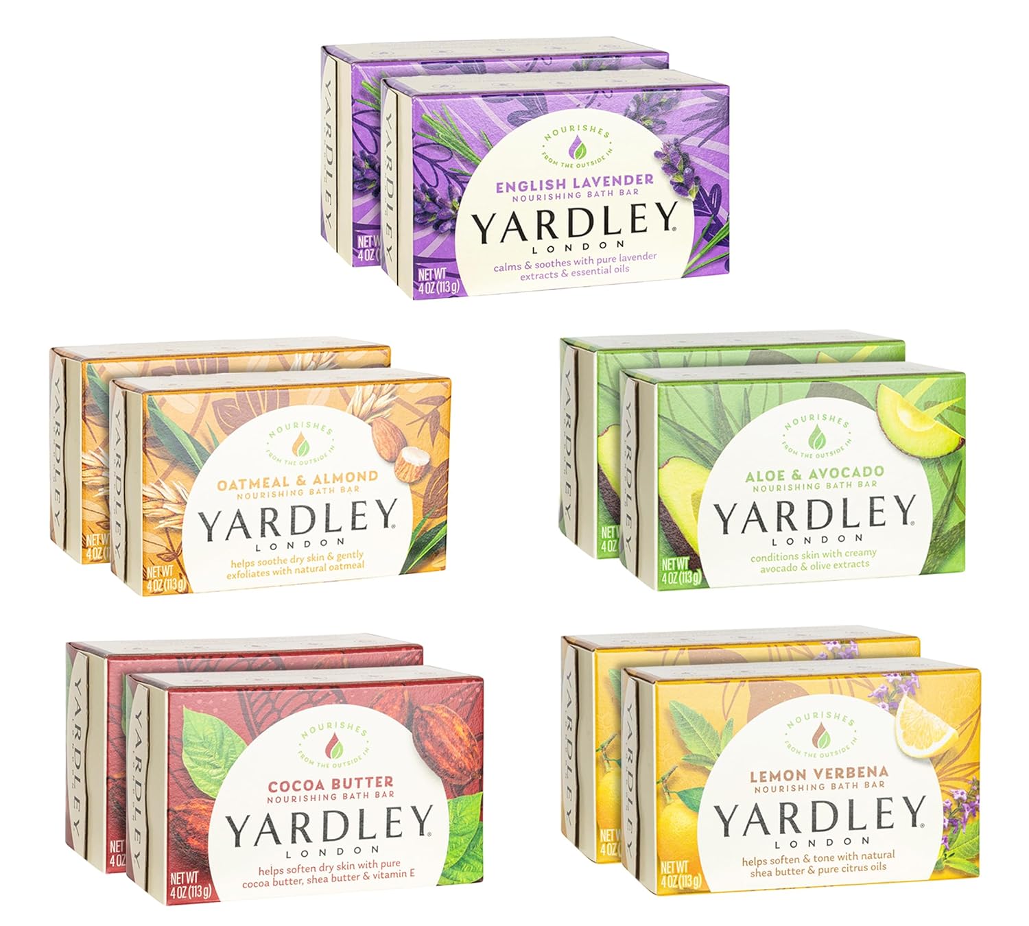 Yardley London Soap Bath Bar Bundle - 10 Bars: English Lavender, Oatmeal and Almond, Aloe and Avocado, Cocoa Butter, Lemon Verbena 4 Ounce Bars (Pack of 10, Two of each)