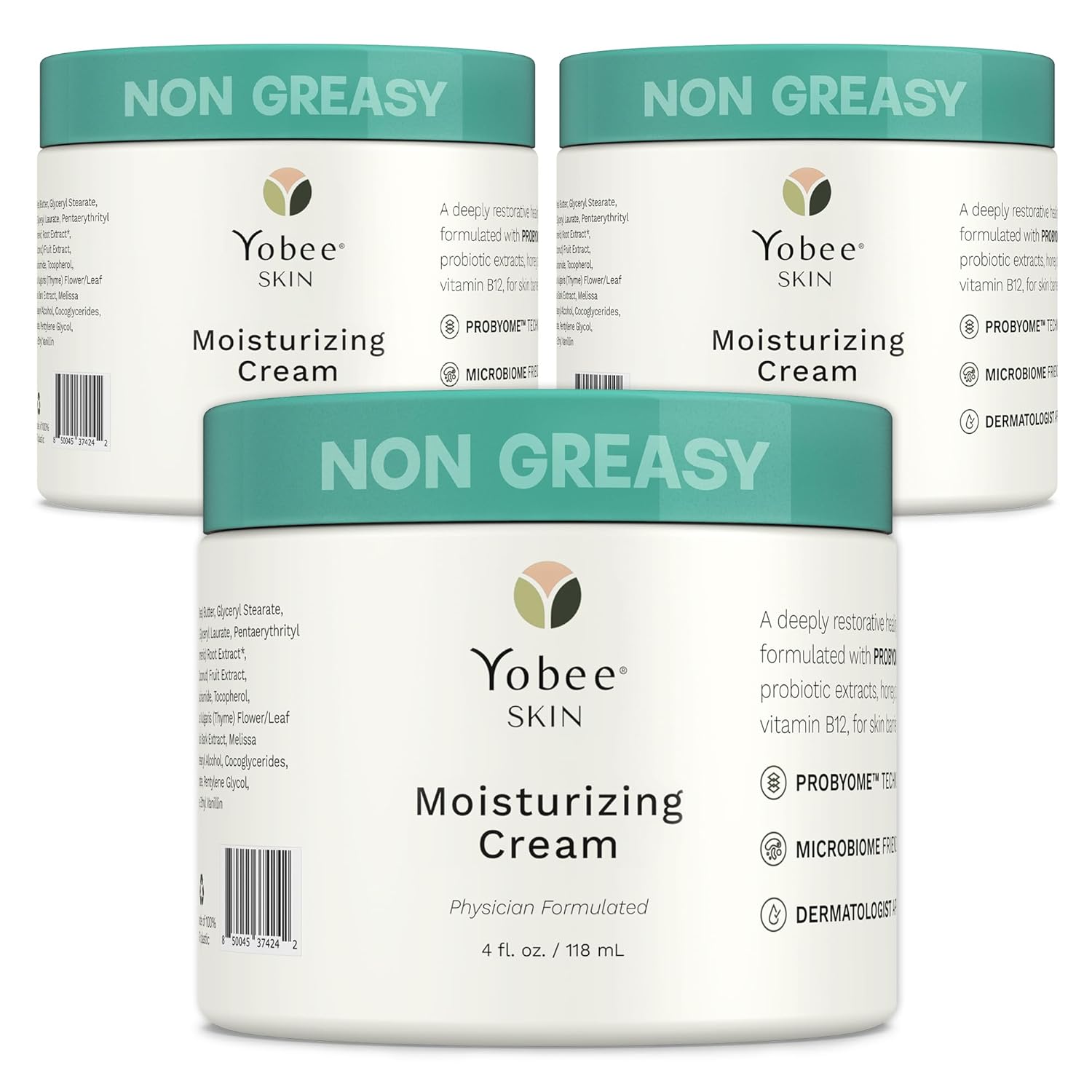 Yobee Body & Face Cream for Dry, Itchy Skin | Dermatologist Formulated | Probiotics, Honey, Turmeric, Vitamins B12 & E, Ceramides, Shea Butter | Fragrance Free | For Kids & Adults | Soothe Eczema