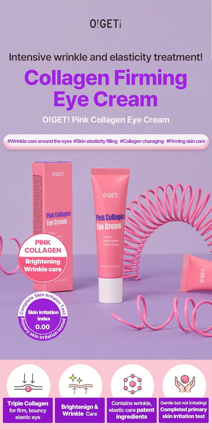 Pink Collagen Eye Cream, Anti-Aging Eye Moisturizer, Ultra-Low Molecular Collagen, 26-Component Firming, 1.0 fl.oz