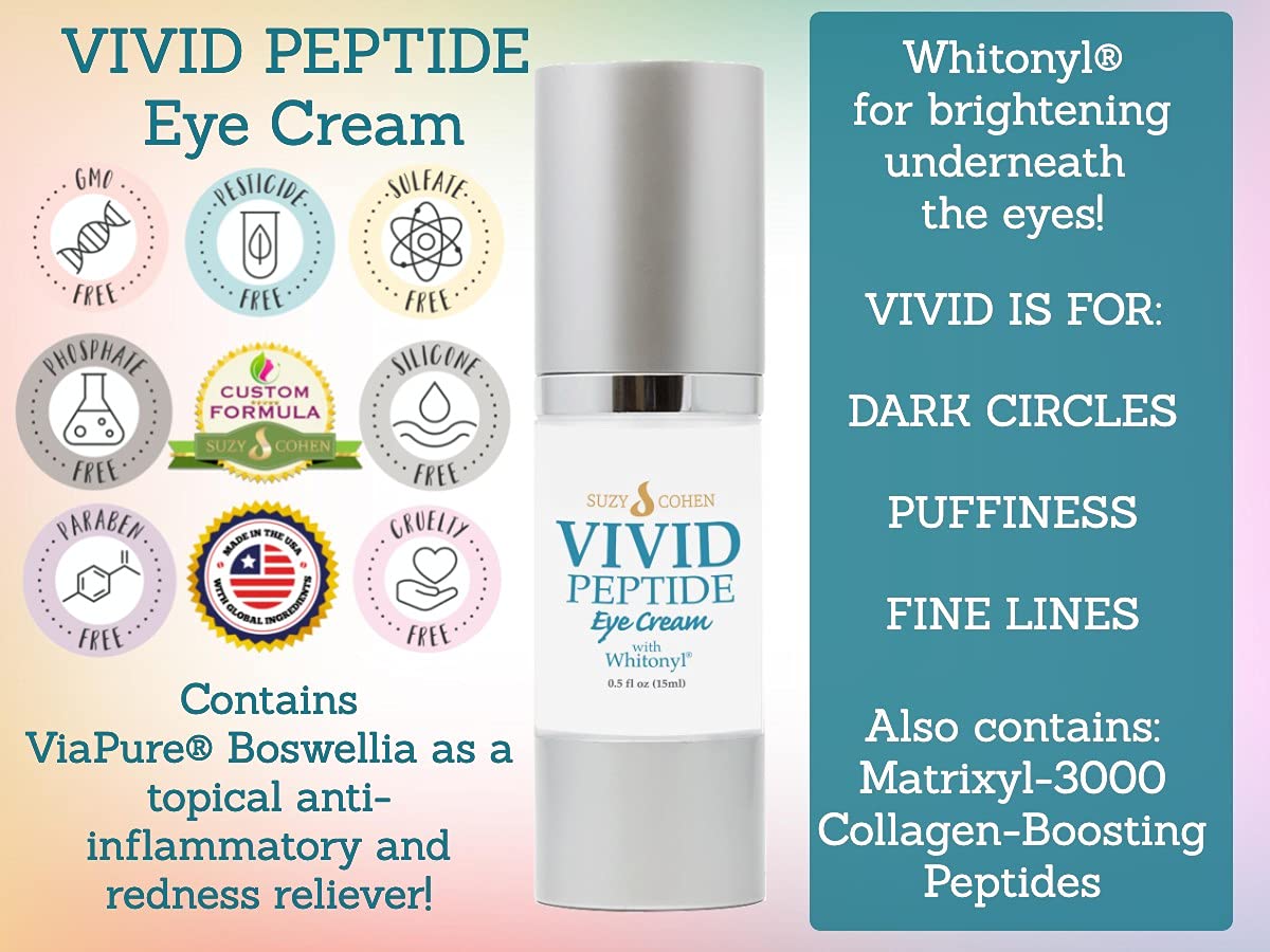 VIVID Peptide Eye Cream with Whitonyl for Dark Circles, Puffiness and Fine Lines - Brightens and Boosts Collagen for Firmness and Hydration