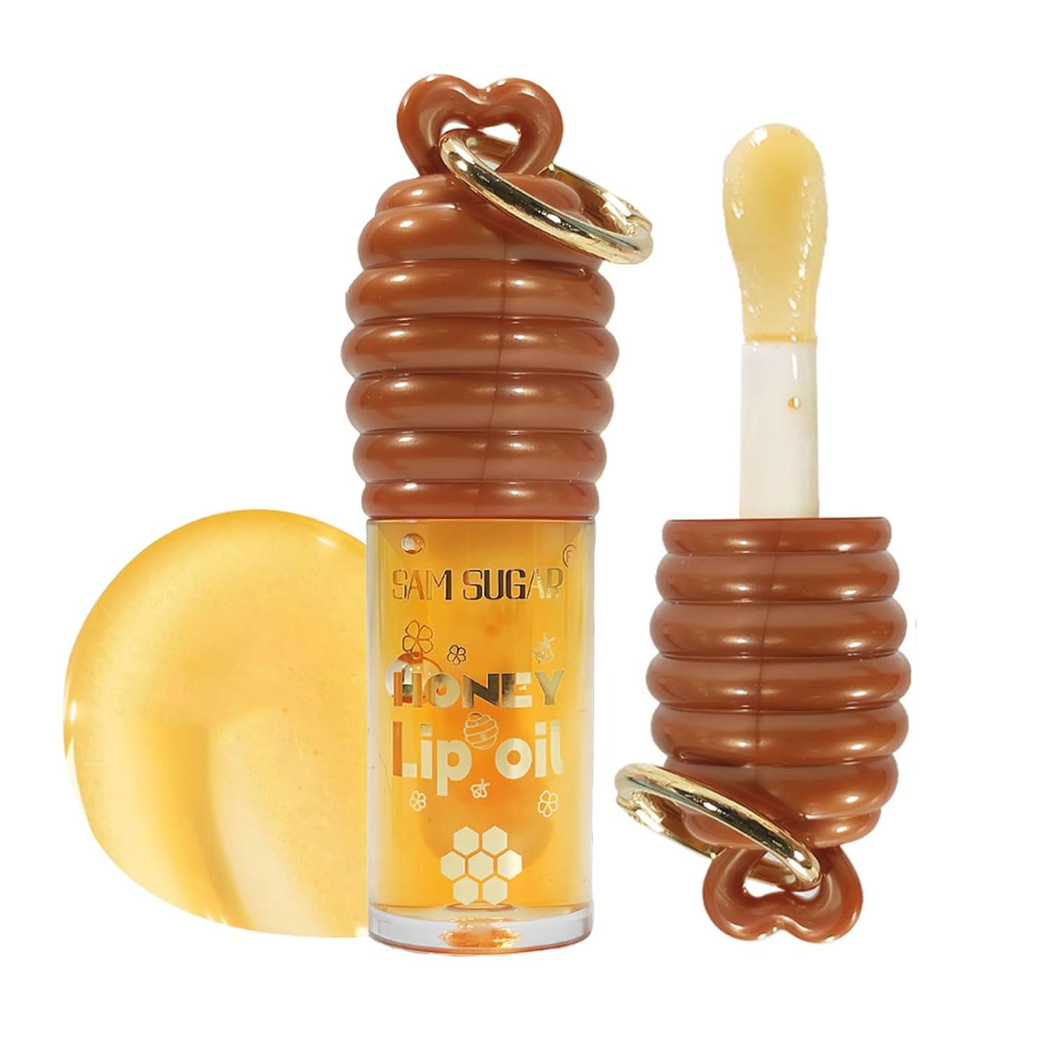 Keychain Honey Lip Oil, Long-lasting Moisturizing Lip Gloss, Lightens Lip Lines, Transparent Moisturizing Lip Balm for Lip Care and Dry Lips, Non-Sticky Finish(02 Pearlescent)