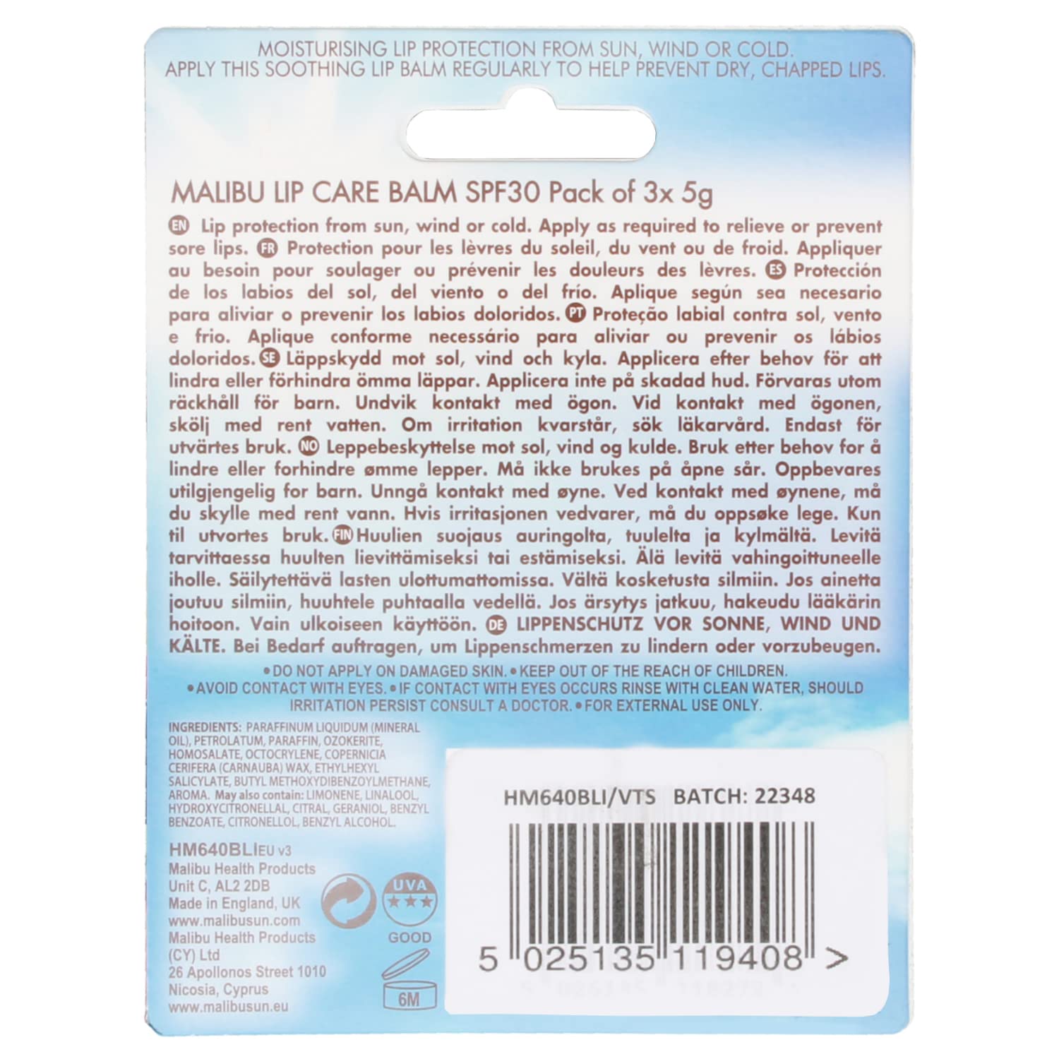 Malibu Lip Care Balm, Vanilla, Tropical, Strawberry, SPF30