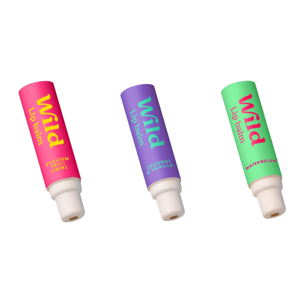 Wild - Refillable Lip Balm - 3 Pack of Lip Balm Refills in a Variety of Scents - Includes Coconut & Vanilla, Passionfruit Swirl & Watermelon Flavors - Beeswax Free