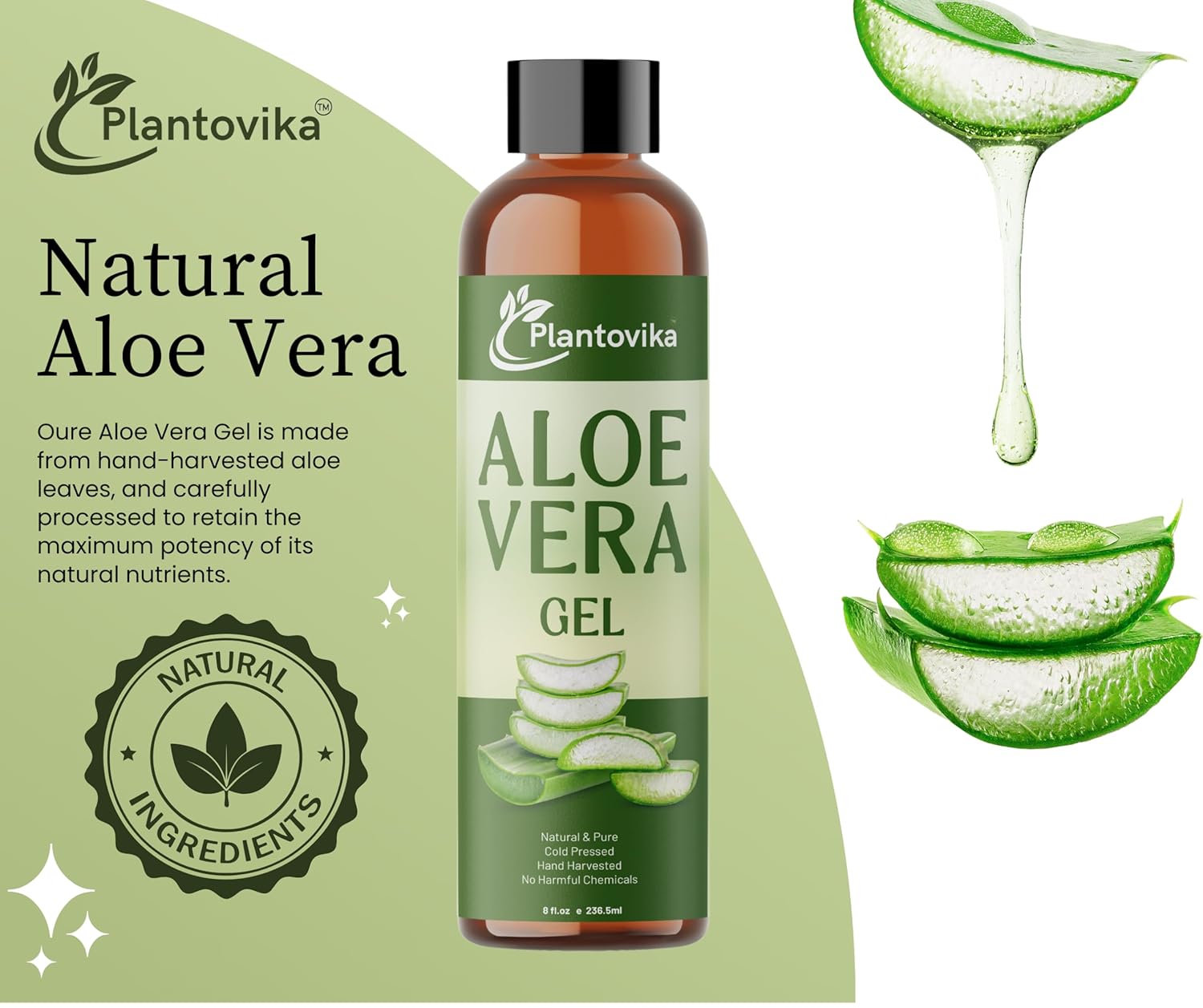 Aloe Vera Gel - Natural, Hydrating, Soothing for Face, Skin, Hair, Sunburn - 8 Fl Oz
