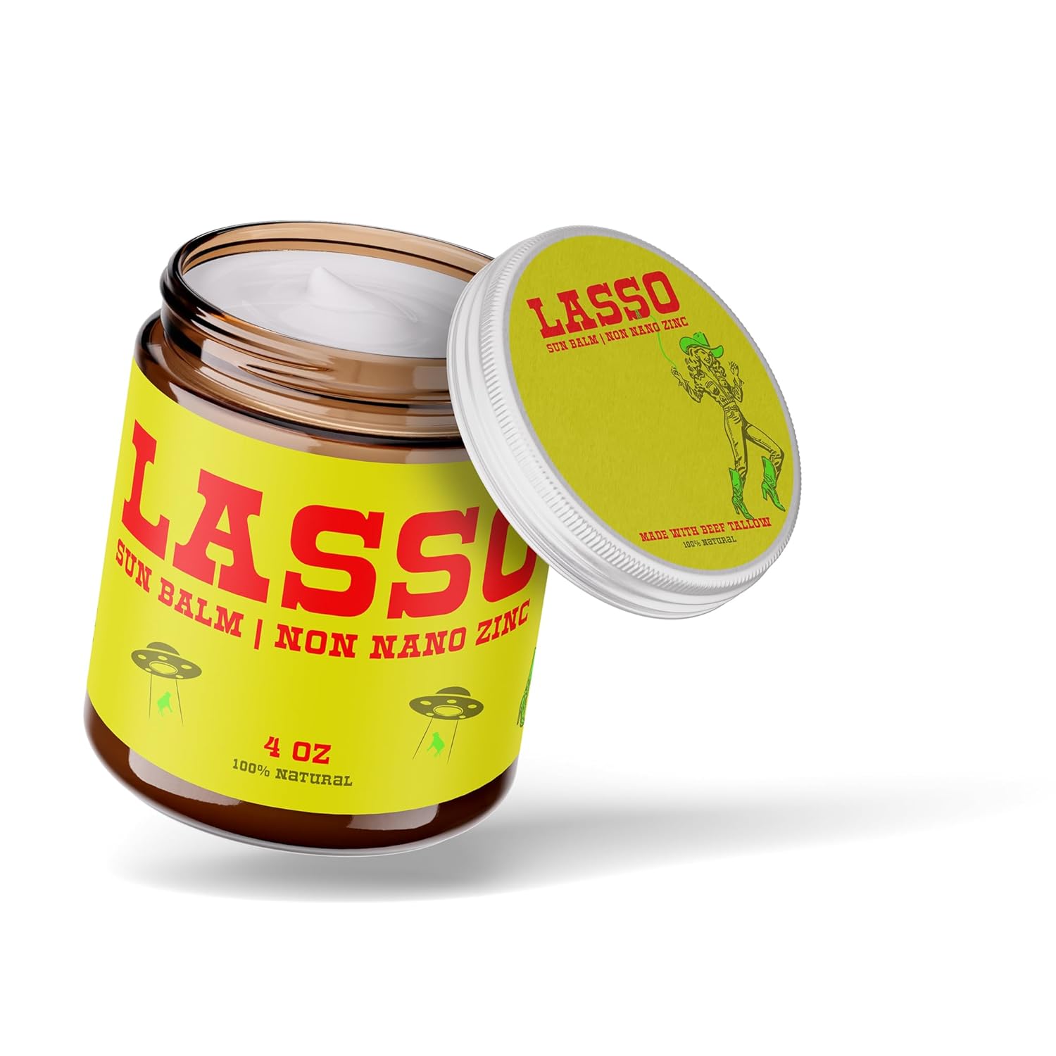 LASSO Tallow Sun Balm – Natural Moisturizing Balm with Non-Nano Zinc, Beeswax & Vitamin E – Grass-Fed Tallow – Reef-Safe, Sensitive Skin-Friendly, No White Cast- Hand Crafted in USA – 4oz Glass Jar