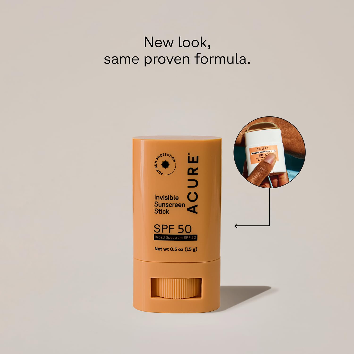 Acure Invisible Sunscreen Stick SPF 50 - Face Sunscreen Stick Applicator, Clear Sublock for Sensitive Skin, Natural Glow for Face & Body with Vitamin E, Solar Protector, Travel Size, Vegan - 0.5 oz