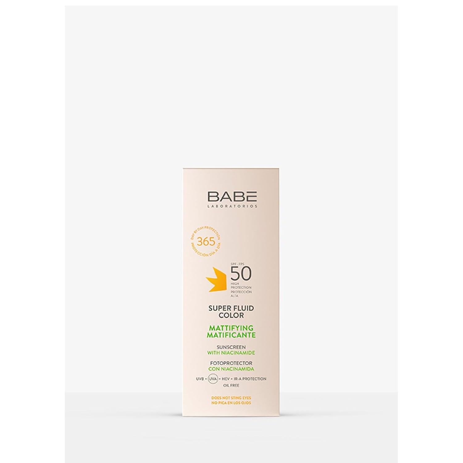 Babe Super Fluid Color Mattifying SPF 50 – Tinted Facial Sunscreen for Oily Skin – Oil-Free, Lightweight, Broad Spectrum UVA/UVB Protection – With Niacinamide & Carnosine – 50ml