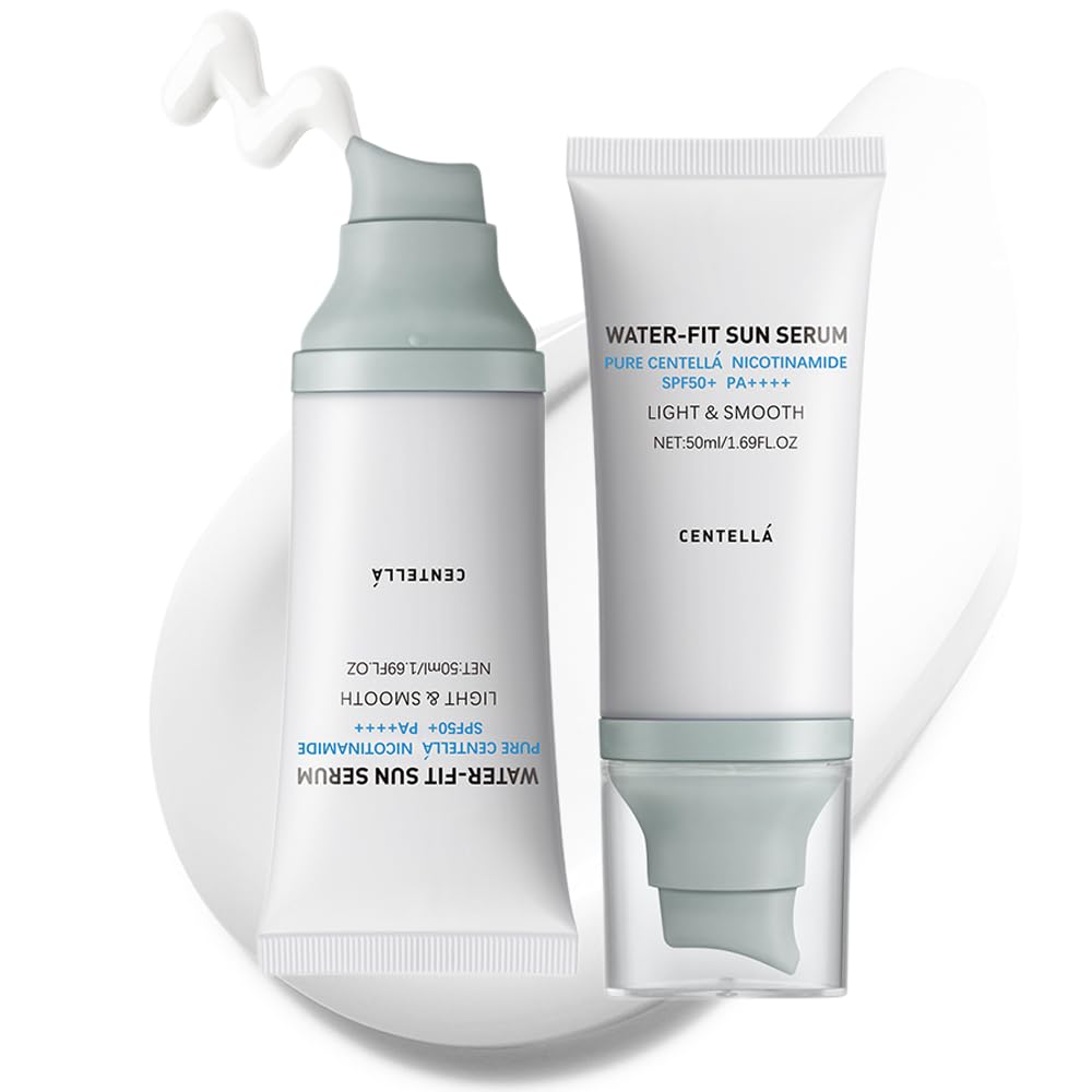 2PCS Centella Sunscreen SPF 50 PA++++, Hyalu Cica Water-Fit Sun Serum, Lightweight Sunscreen with Centella Asiatica, Hydrating & Non-Greasy Sun Protection for Sensitive Skin