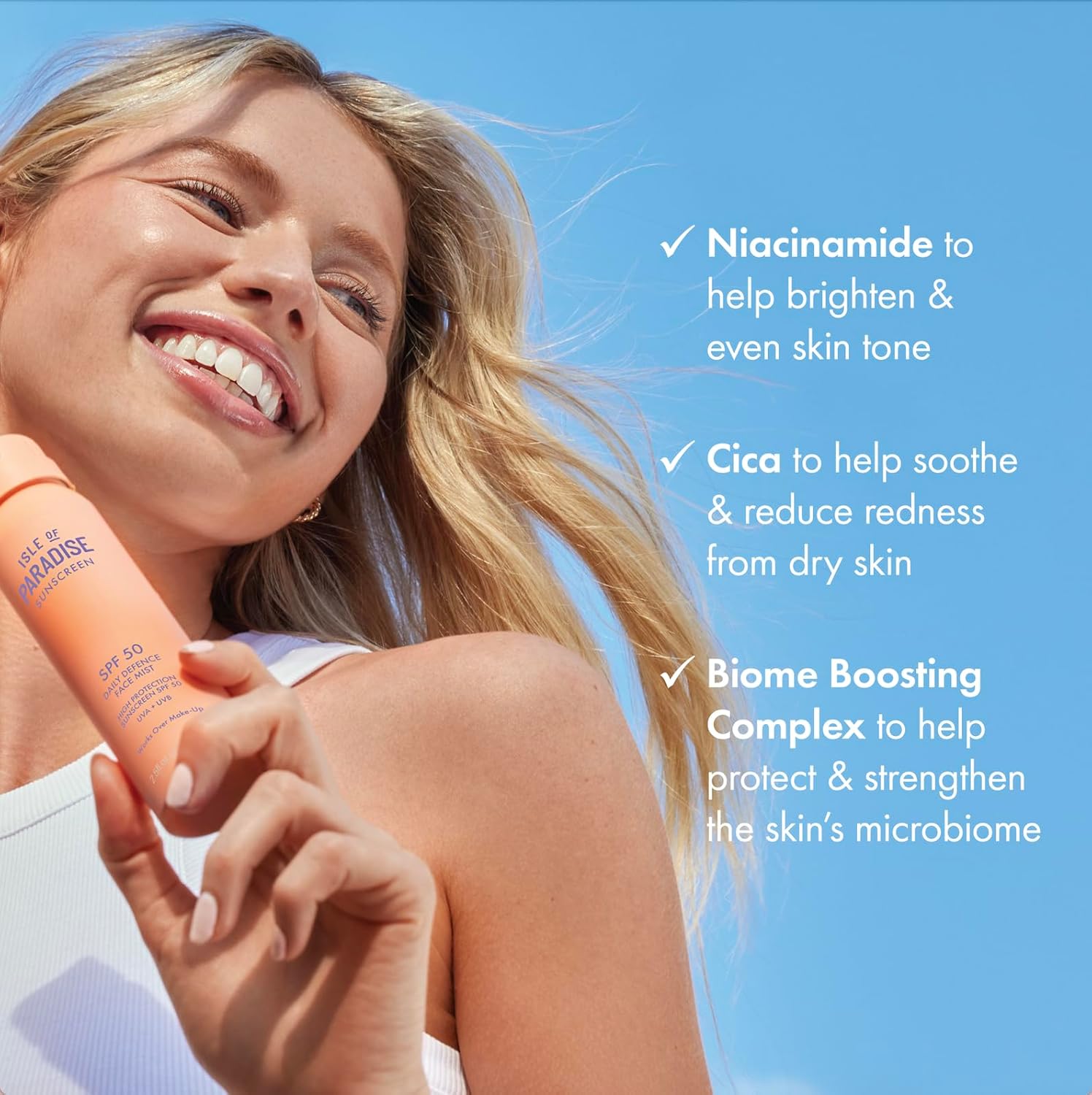 Isle of Paradise Daily Defense Face Mist SPF 50, Invisible Hydrating Sunscreen Spray For Face, Broad Spectrum Protection, Makeup-Friendly, Vegan & Water-Resistant Formula, 2 fl. oz/59 ml Bottle