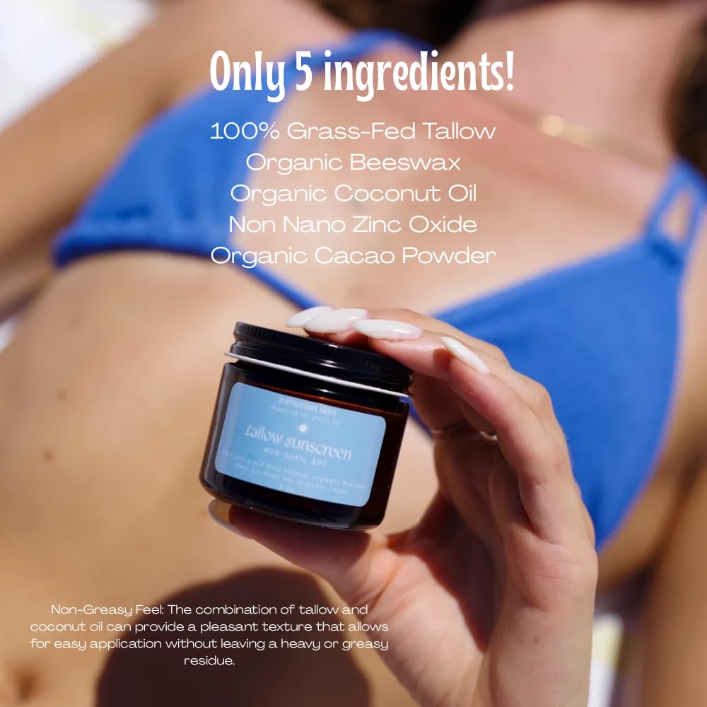 Natural Tallow Sunscreen with Zinc Oxide, SPF 30, Moisturizing Face and Body Protection