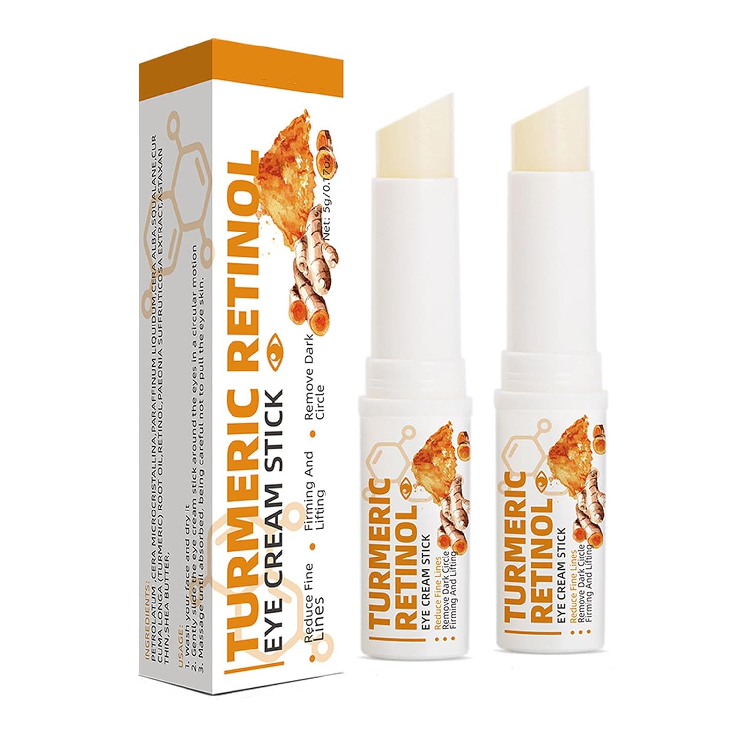 2 PCS Turmeric Retinol Eye Stick,Eye Balm Stick Hydrating for Dark Circle,Wrinkles,Visible Results in 3-4 Weeks,Anti Aging Under Eye,Retinol Eye Cream For Puffiness and Bags Reduces Fine Lines