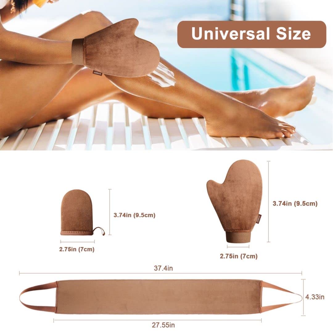 【3-in-1 Full Body Self Tanner Mitt】You deserve the best! Treat yourself to the BEST tanning mitts self tanner, get a real flawlessly sun-kissed skin, and finish by yourself without asking others for help. This tanning mitten set include 1x self tanning mitt for body tan, 1x back lotion applicator for back tan, 1x small mitt for detail tan(such as fingers and toes, etc), which ensures you use self tanner mitt separately for each part of the body, MORE clean and safe.