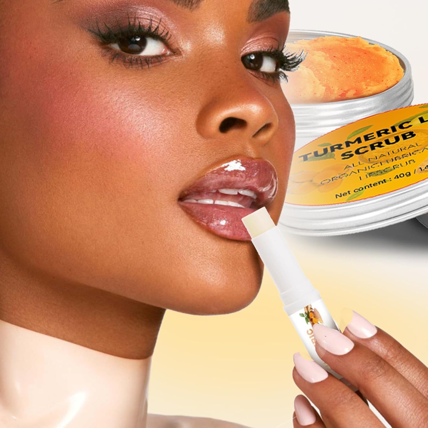 【A perfect set for every occasion】 This set includes a turmeric lip balm, a turmeric lip scrub, and two lip scrubber, all working together to exfoliate and repair dry, chapped, and dull lips. Whether you're preparing for daily lip care or a special occasion, this turmeric lip care set offers the perfect solution. It not only improves lip health but also lays a foundation for a smoother, longer-lasting lip makeup application.