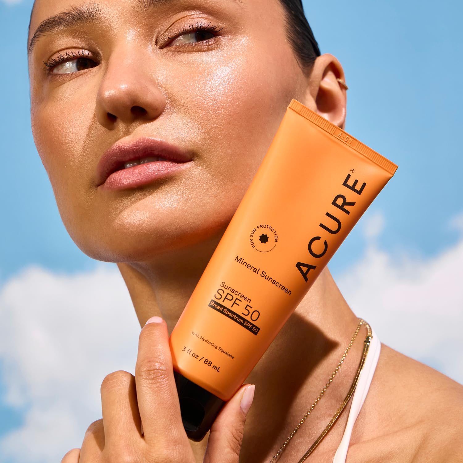 Acure Mineral Sunscreen SPF 50 - Zinc Oxide Sunscreen for Face & Body, Travel Size Sunblock Cream for Men & Women, Non Toxic for Sensitive Skin with Squalane for Hydration - 3 fl oz(3 Fl Oz (Pack of 1))