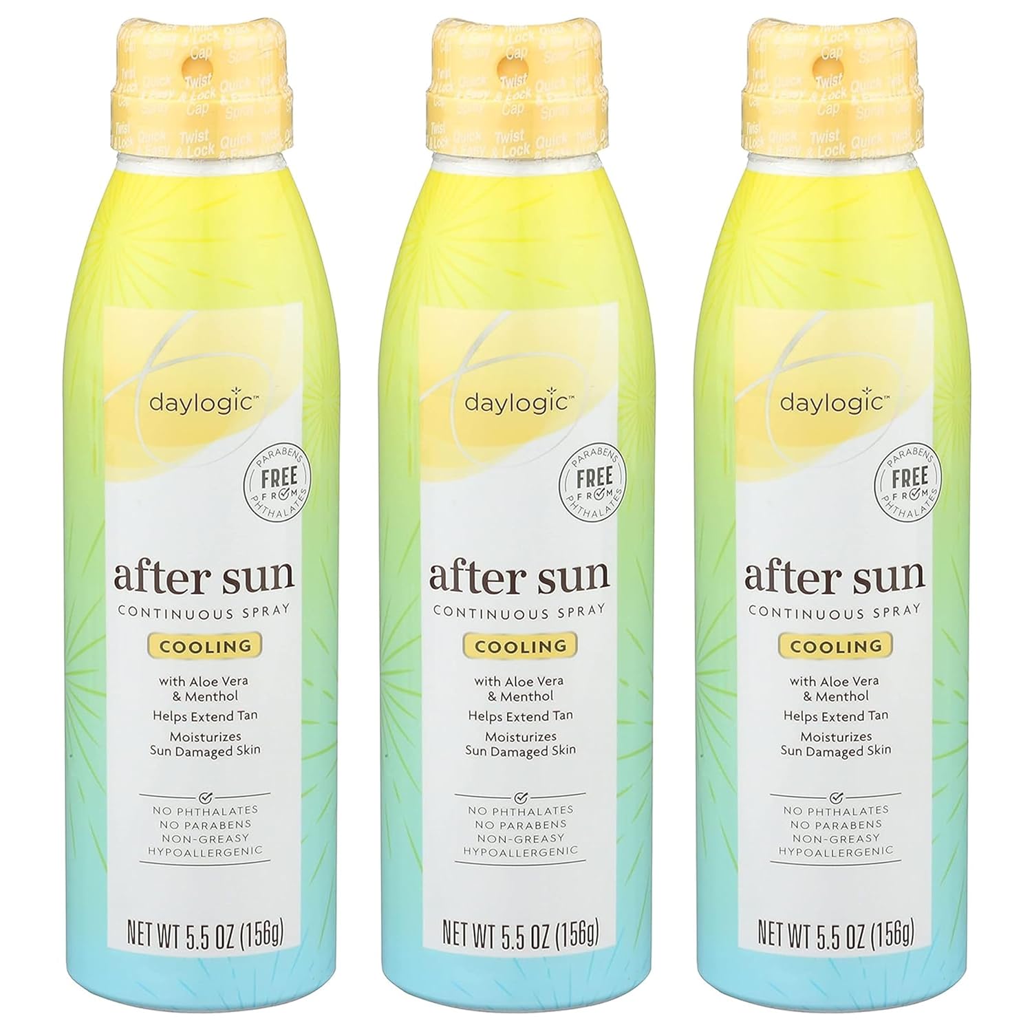 After Sun Spray with Aloe Vera and Menthol, 5.5 oz, Pack of 3, Cooling Mist for Sunburn Relief, Tan Extender and Skin Hydration, Continuous Spray, Non-Greasy, Hypoallergenic